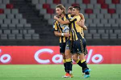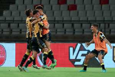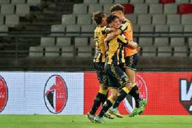 TVEM Agust 17, 2024 Bari, Italy - SSC Bari vs SS Juve Stabia - Italian soccer serie B 2024/25 - San Nicola Stadium. In the pic by E. Mastrodonato/ag. Aldo Liverani sas: Marco Bellich of SS Juve Stabia celebrates after scoring a goal with teammates ©TVEM/ AGENZIA ALDO LIVERANI SAS