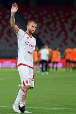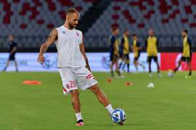 TVEM Agust 17, 2024 Bari, Italy - SSC Bari vs SS Juve Stabia - Italian soccer serie B 2024/25 - San Nicola Stadium. In the pic by E. Mastrodonato/ag. Aldo Liverani sas: Giuseppe Sibilli of SSC Bari greet the fans