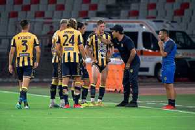 TVEM Agust 17, 2024 Bari, Italy - SSC Bari vs SS Juve Stabia - Italian soccer serie B 2024/25 - San Nicola Stadium. In the pic by E. Mastrodonato/ag. Aldo Liverani sas: Players of SS Juve Stabia celebrates the victory