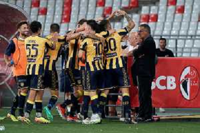 TVEM Agust 17, 2024 Bari, Italy - SSC Bari vs SS Juve Stabia - Italian soccer serie B 2024/25 - San Nicola Stadium. In the pic by E. Mastrodonato/ag. Aldo Liverani sas: Francesco Folino of SS Juve Stabia celebrates after scoring a goal with teammates ©TVEM/ AGENZIA ALDO LIVERANI SAS