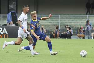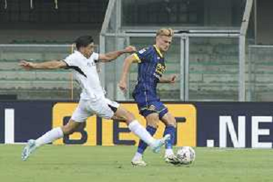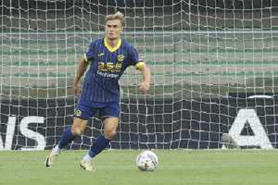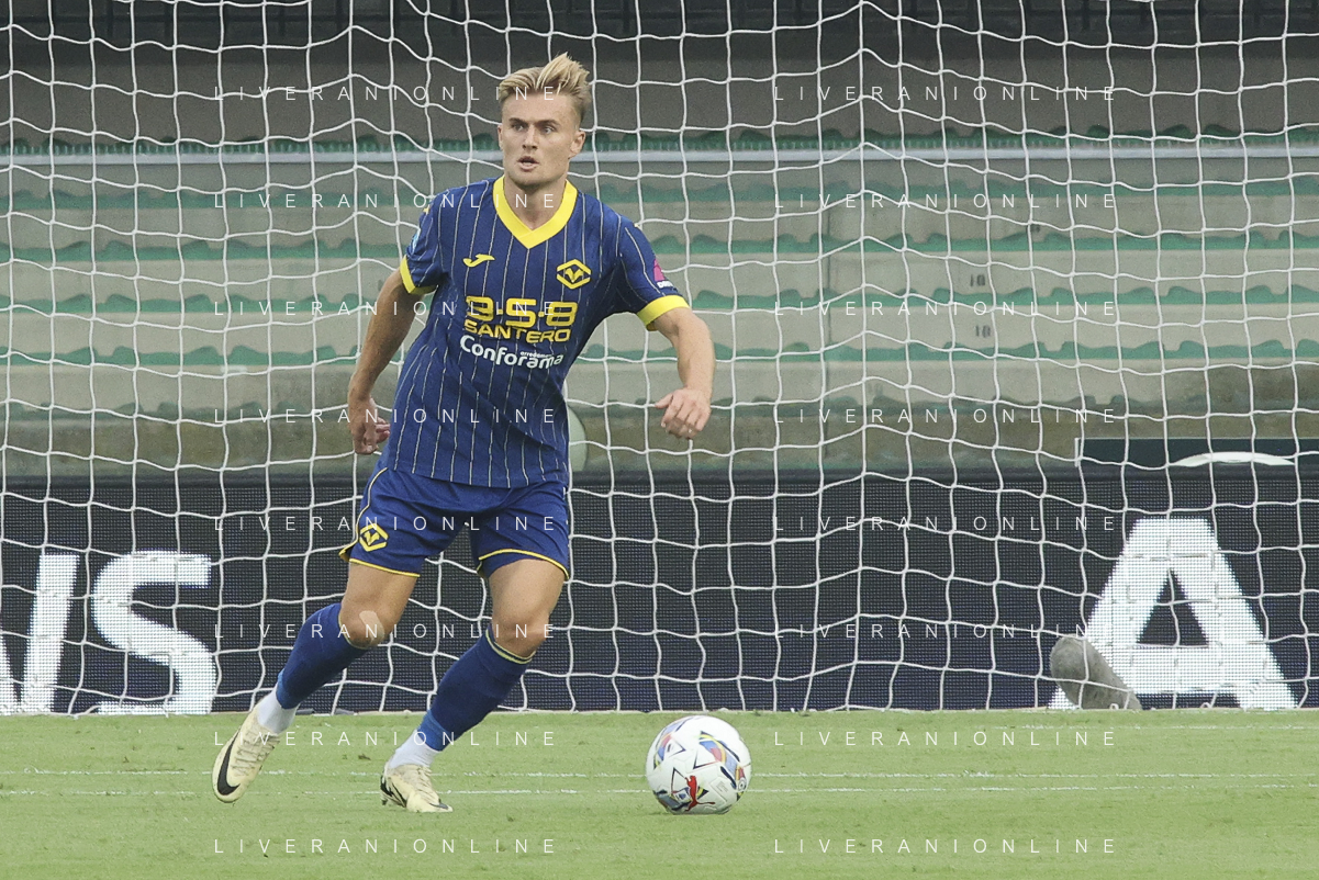 Martin Frese of Hellas Verona FC play the ball2 during Hellas Verona FC vs SSC Napoli, 1° Serie A EniLive 2024-25 game at Marcantonio Bentegodi Stadium in Verona (VR), Italy, on August 18, 2024. (Photo by Davide Casentini)/AGENZIA ALDO LIVERANI SAS