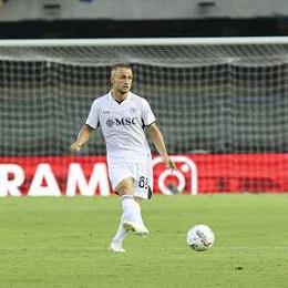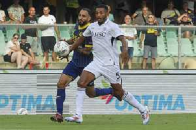 Amir Rrahmani of SSC Napoli play the ball during Hellas Verona FC vs SSC Napoli, 1° Serie A EniLive 2024-25 game at Marcantonio Bentegodi Stadium in Verona (VR), Italy, on August 18, 2024. (Photo by Davide Casentini)/AGENZIA ALDO LIVERANI SAS