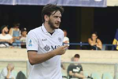 Leonardo Spinazzola of SSC Napoli during Hellas Verona FC vs SSC Napoli, 1° Serie A EniLive 2024-25 game at Marcantonio Bentegodi Stadium in Verona (VR), Italy, on August 18, 2024. (Photo by Davide Casentini)/AGENZIA ALDO LIVERANI SAS