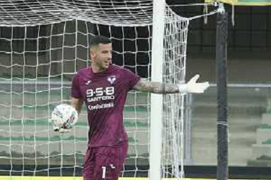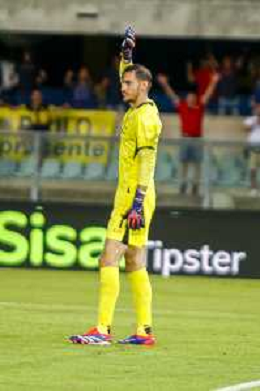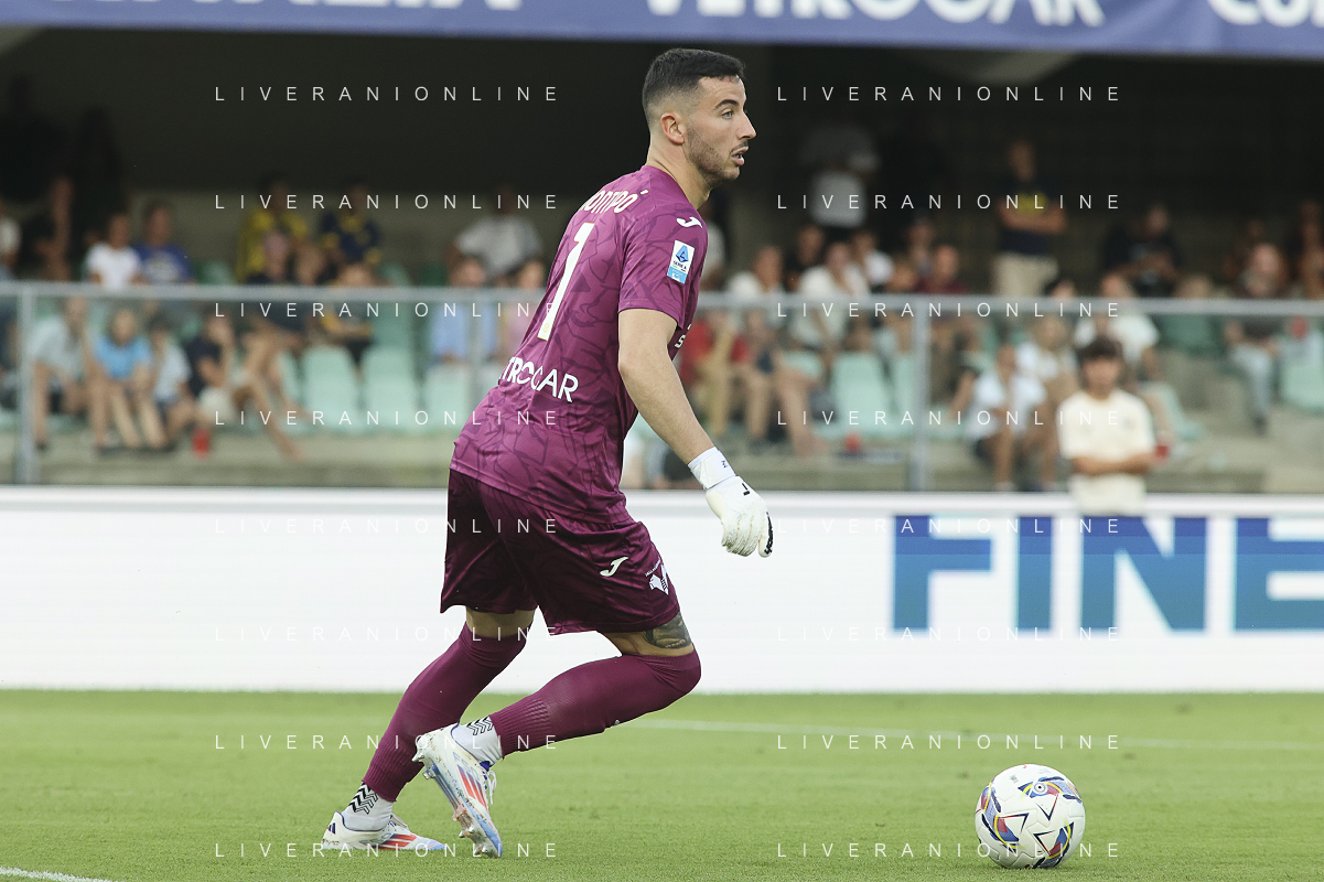 Lorenzo Montipo' of Hellas Verona FC play the ball during Hellas Verona FC vs SSC Napoli, 1° Serie A EniLive 2024-25 game at Marcantonio Bentegodi Stadium in Verona (VR), Italy, on August 18, 2024. (Photo by Davide Casentini)/AGENZIA ALDO LIVERANI SAS