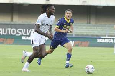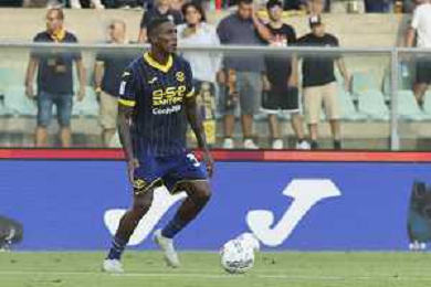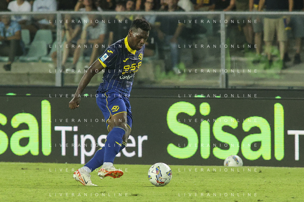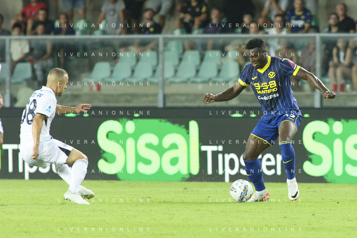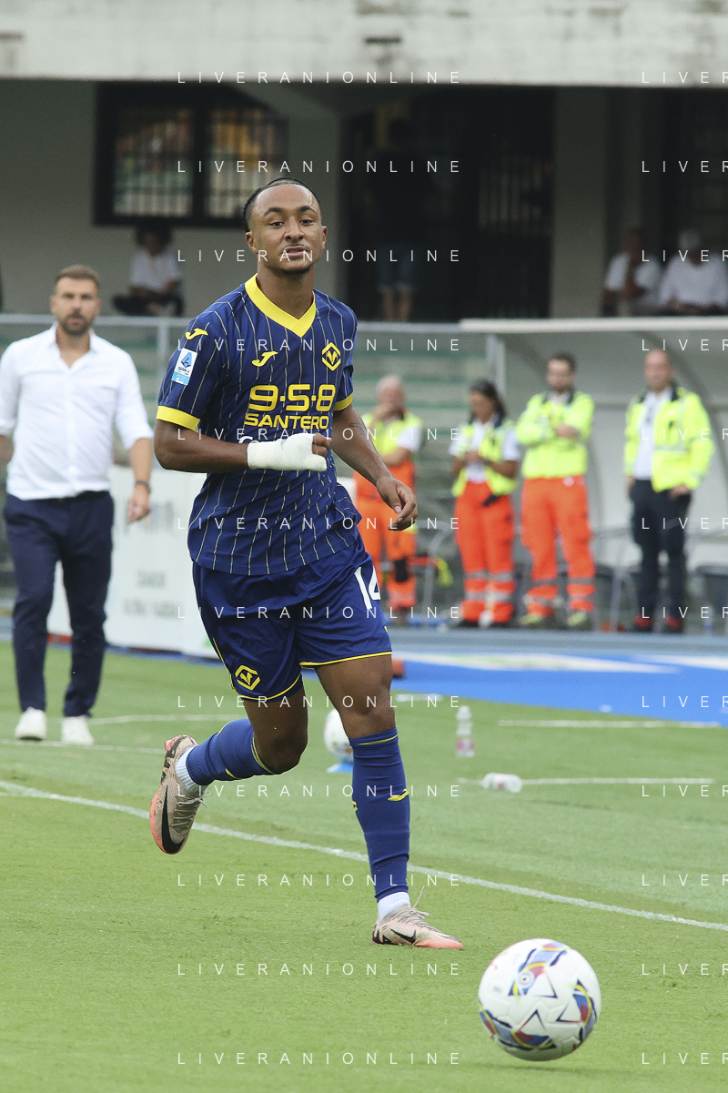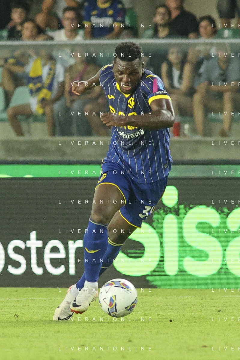 Jackson Tchatchoua of Hellas Verona FCduring Hellas Verona FC vs SSC Napoli, 1° Serie A EniLive 2024-25 game at Marcantonio Bentegodi Stadium in Verona (VR), Italy, on August 18, 2024. (Photo by Davide Casentini)/AGENZIA ALDO LIVERANI SAS
