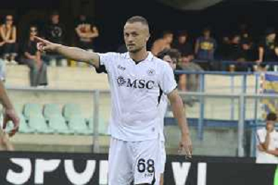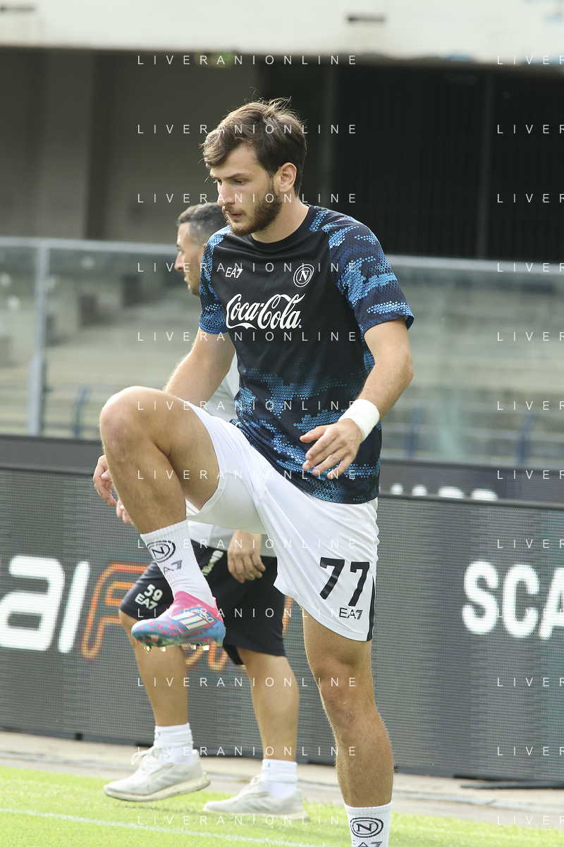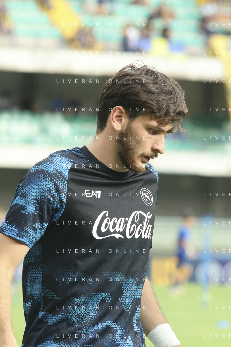 Amir Rrahmani of SSC Napoli during training pre Hellas Verona FC vs SSC Napoli, 1° Serie A EniLive 2024-25 game at Marcantonio Bentegodi Stadium in Verona (VR), Italy, on August 18, 2024. (Photo by Davide Casentini)/AGENZIA ALDO LIVERANI SAS