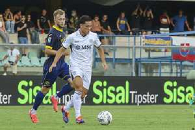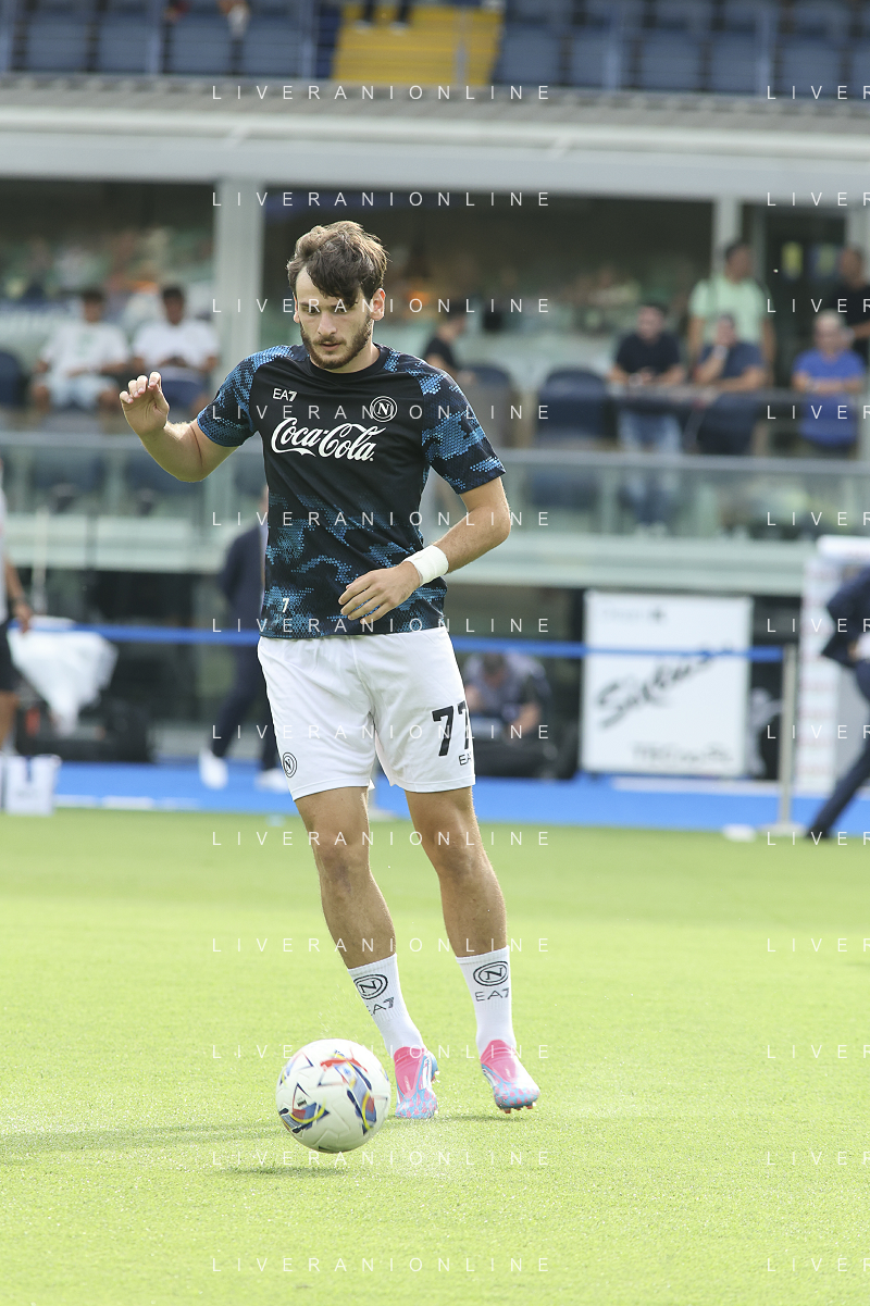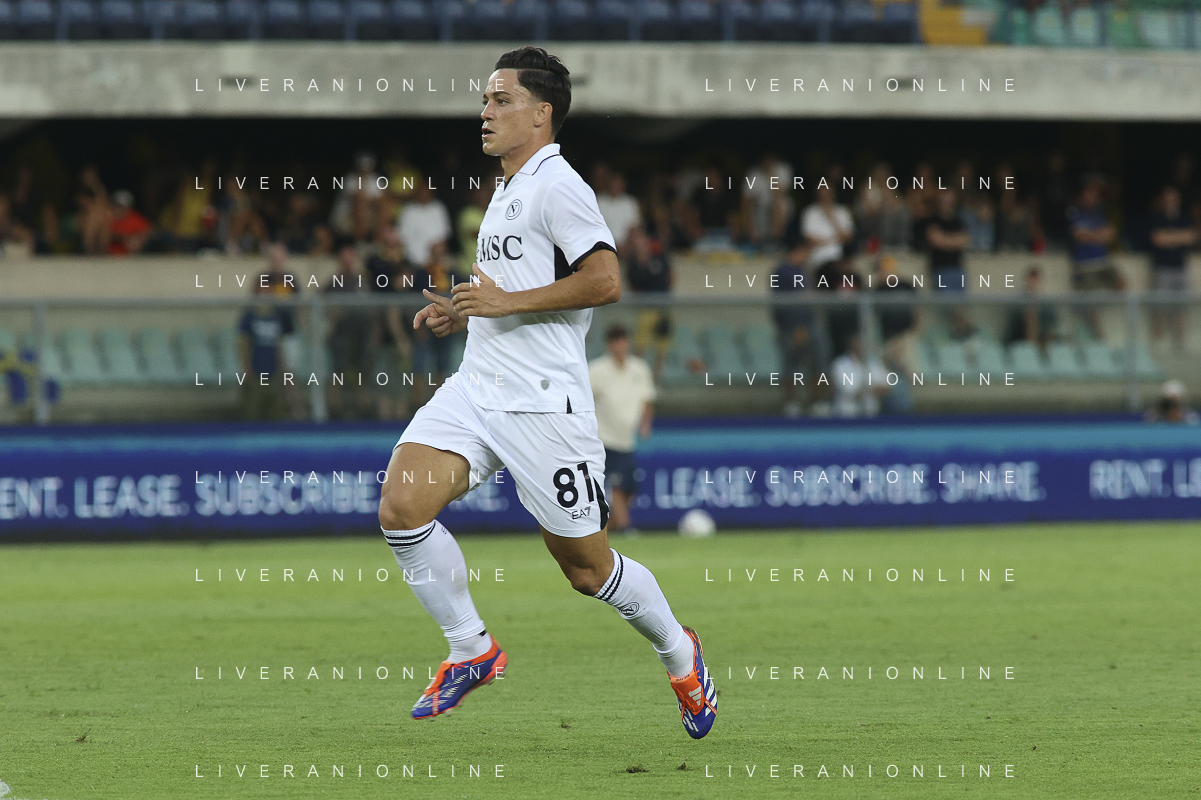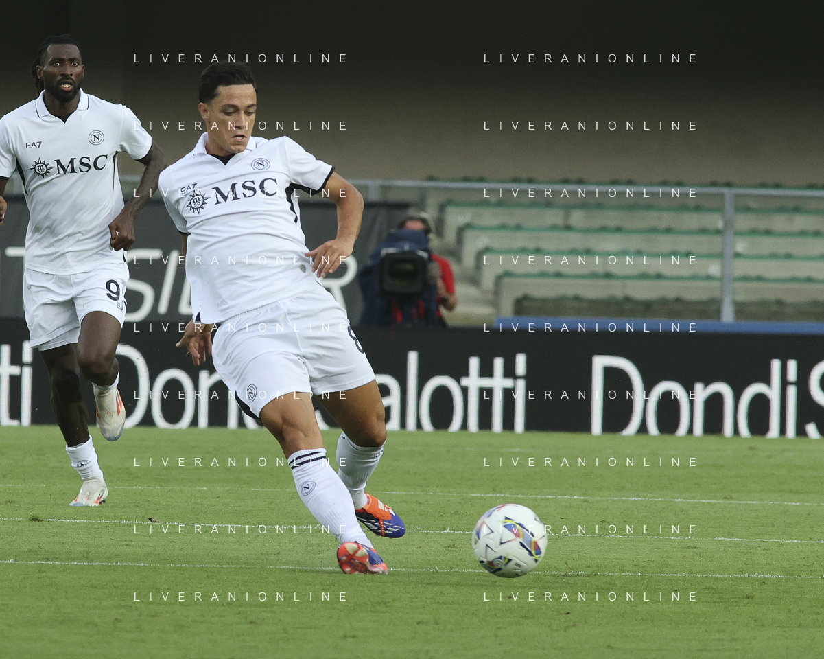 Giacomo Raspadori of SSC Napoli during Hellas Verona FC vs SSC Napoli, 1° Serie A EniLive 2024-25 game at Marcantonio Bentegodi Stadium in Verona (VR), Italy, on August 18, 2024. (Photo by Davide Casentini)/AGENZIA ALDO LIVERANI SAS