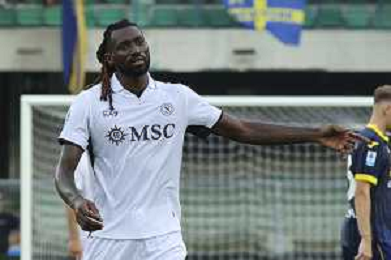 Andre'-Frank Zambo Anguissa of SSC Napoli gestures during Hellas Verona FC vs SSC Napoli, 1° Serie A EniLive 2024-25 game at Marcantonio Bentegodi Stadium in Verona (VR), Italy, on August 18, 2024. (Photo by Davide Casentini)/AGENZIA ALDO LIVERANI SAS