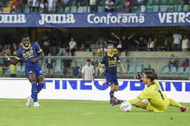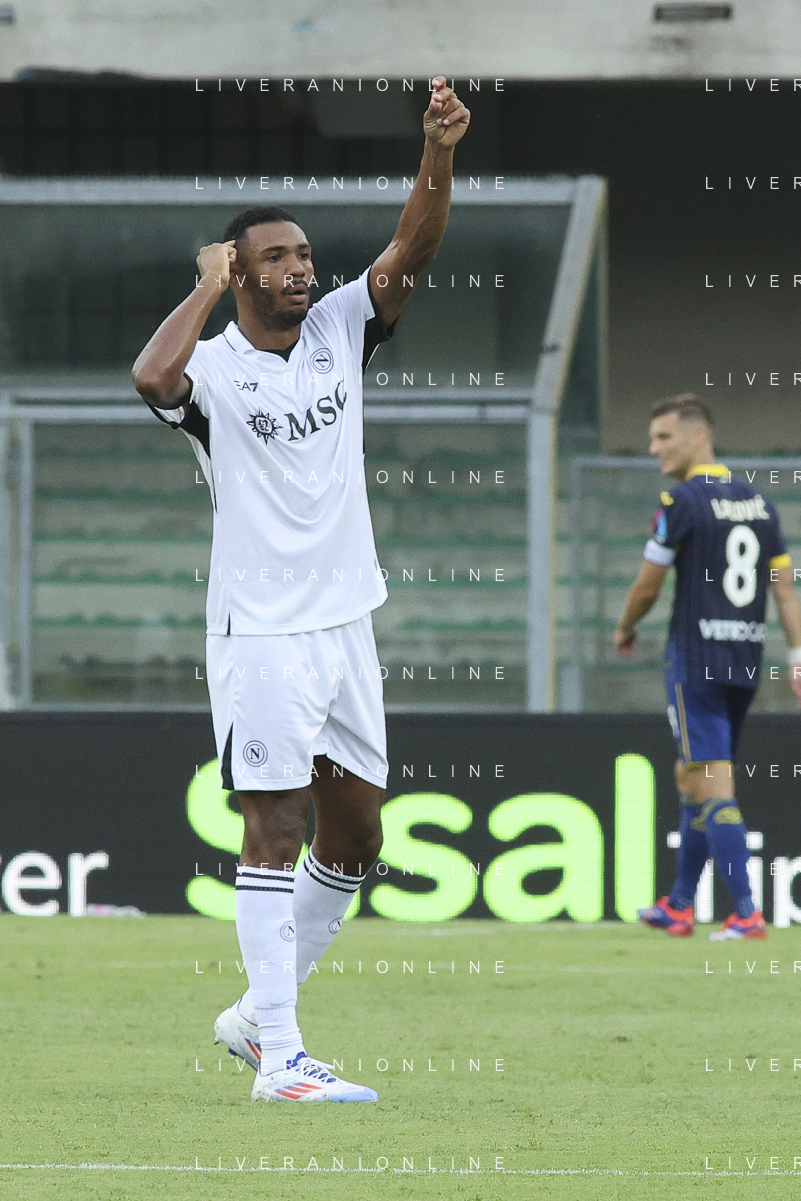 Daniel Mosquera of Hellas Verona FC scores a goal during Hellas Verona FC vs SSC Napoli, 1° Serie A EniLive 2024-25 game at Marcantonio Bentegodi Stadium in Verona (VR), Italy, on August 18, 2024. (Photo by Davide Casentini)/AGENZIA ALDO LIVERANI SAS