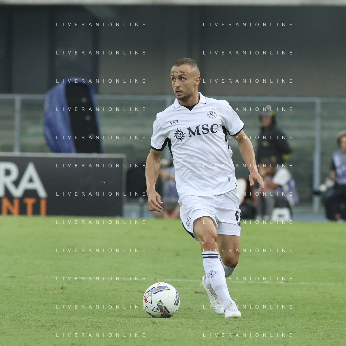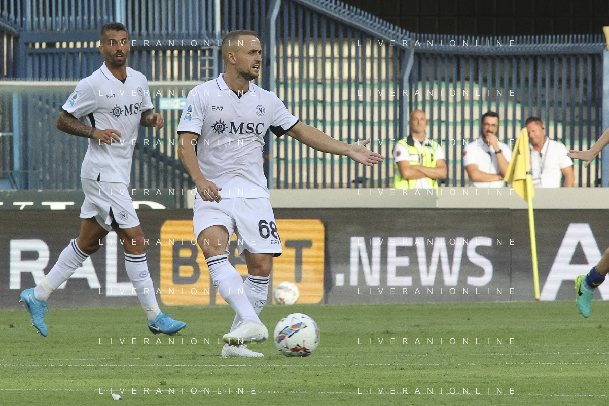 Stanislav Lobotka of SSC Napoli play the ball during Hellas Verona FC vs SSC Napoli, 1° Serie A EniLive 2024-25 game at Marcantonio Bentegodi Stadium in Verona (VR), Italy, on August 18, 2024. (Photo by Davide Casentini)/AGENZIA ALDO LIVERANI SAS