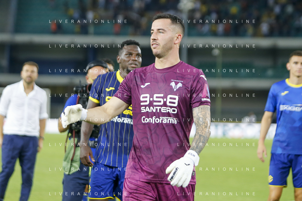 Lorenzo Montipo' of Hellas Verona FC during Hellas Verona FC vs SSC Napoli, 1° Serie A EniLive 2024-25 game at Marcantonio Bentegodi Stadium in Verona (VR), Italy, on August 18, 2024. (Photo by Davide Casentini)/AGENZIA ALDO LIVERANI SAS