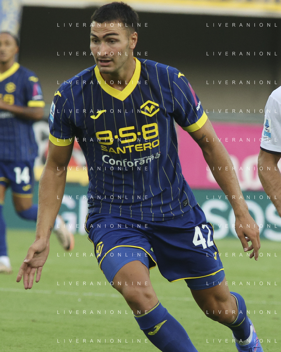 Diego Coppola of Hellas Verona FC during Hellas Verona FC vs SSC Napoli, 1° Serie A EniLive 2024-25 game at Marcantonio Bentegodi Stadium in Verona (VR), Italy, on August 18, 2024. (Photo by Davide Casentini)/AGENZIA ALDO LIVERANI SAS