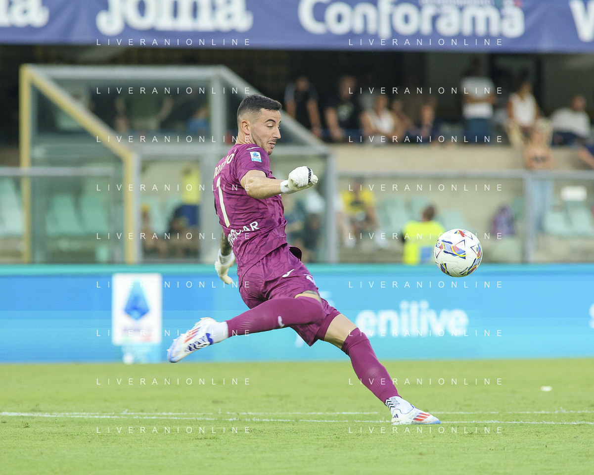 Lorenzo Montipo' of Hellas Verona FC kick the ball during Hellas Verona FC vs SSC Napoli, 1° Serie A EniLive 2024-25 game at Marcantonio Bentegodi Stadium in Verona (VR), Italy, on August 18, 2024. (Photo by Davide Casentini)/AGENZIA ALDO LIVERANI SAS