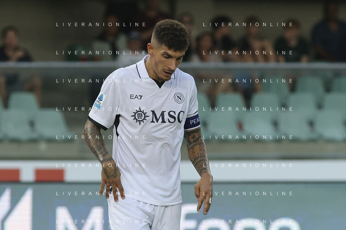 Giovanni Di Lorenzo of SSC Napoli expresses disappointment during Hellas Verona FC vs SSC Napoli, 1° Serie A EniLive 2024-25 game at Marcantonio Bentegodi Stadium in Verona (VR), Italy, on August 18, 2024. (Photo by Davide Casentini)/AGENZIA ALDO LIVERANI SAS