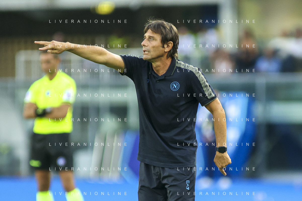 Antonio Conte Head Coach of SSC Napoli expresses disappointment during Hellas Verona FC vs SSC Napoli, 1° Serie A EniLive 2024-25 game at Marcantonio Bentegodi Stadium in Verona (VR), Italy, on August 18, 2024. (Photo by Davide Casentini)/AGENZIA ALDO LIVERANI SAS