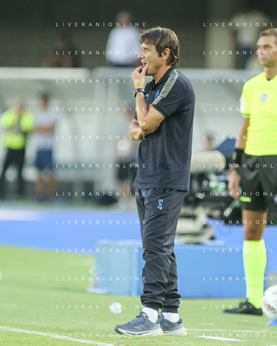Antonio Conte Head Coach of SSC Napoli looks during Hellas Verona FC vs SSC Napoli, 1° Serie A EniLive 2024-25 game at Marcantonio Bentegodi Stadium in Verona (VR), Italy, on August 18, 2024. (Photo by Davide Casentini)/AGENZIA ALDO LIVERANI SAS
