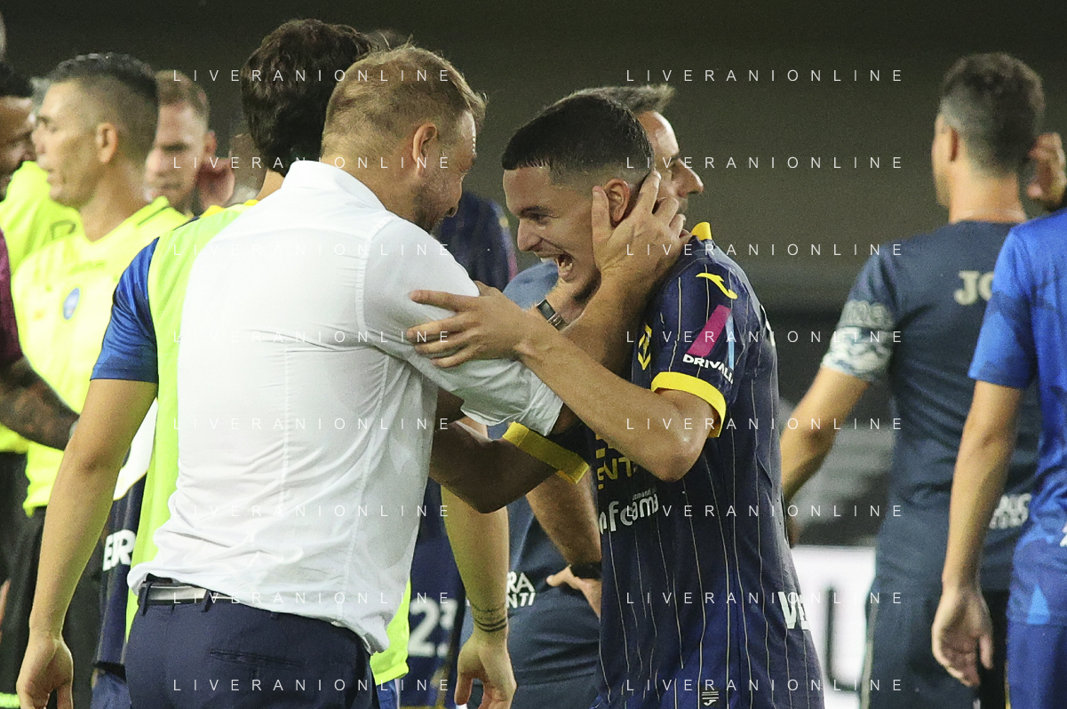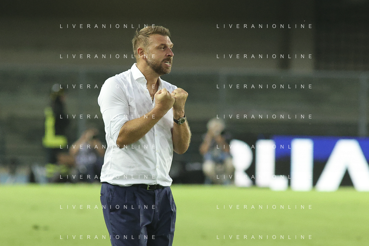 Paolo Zanetti Head Coach of Hellas Verona FC celebrate the victory at the end of Hellas Verona FC vs SSC Napoli, 1° Serie A EniLive 2024-25 game at Marcantonio Bentegodi Stadium in Verona (VR), Italy, on August 18, 2024. (Photo by Davide Casentini)/AGENZIA ALDO LIVERANI SAS