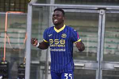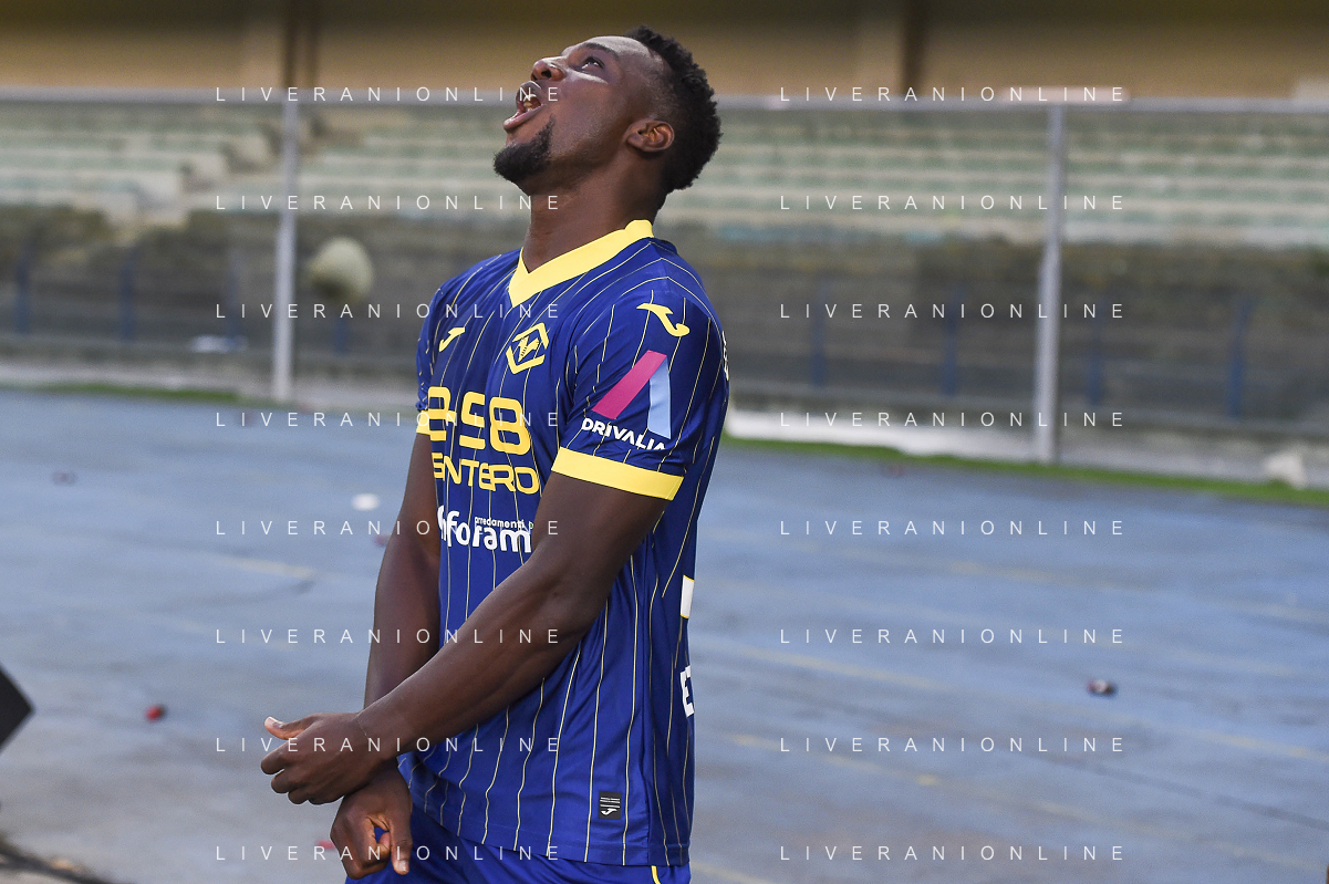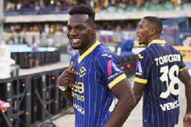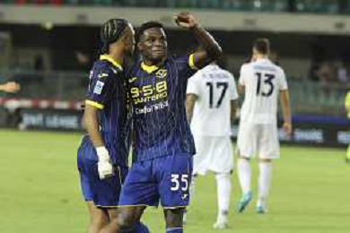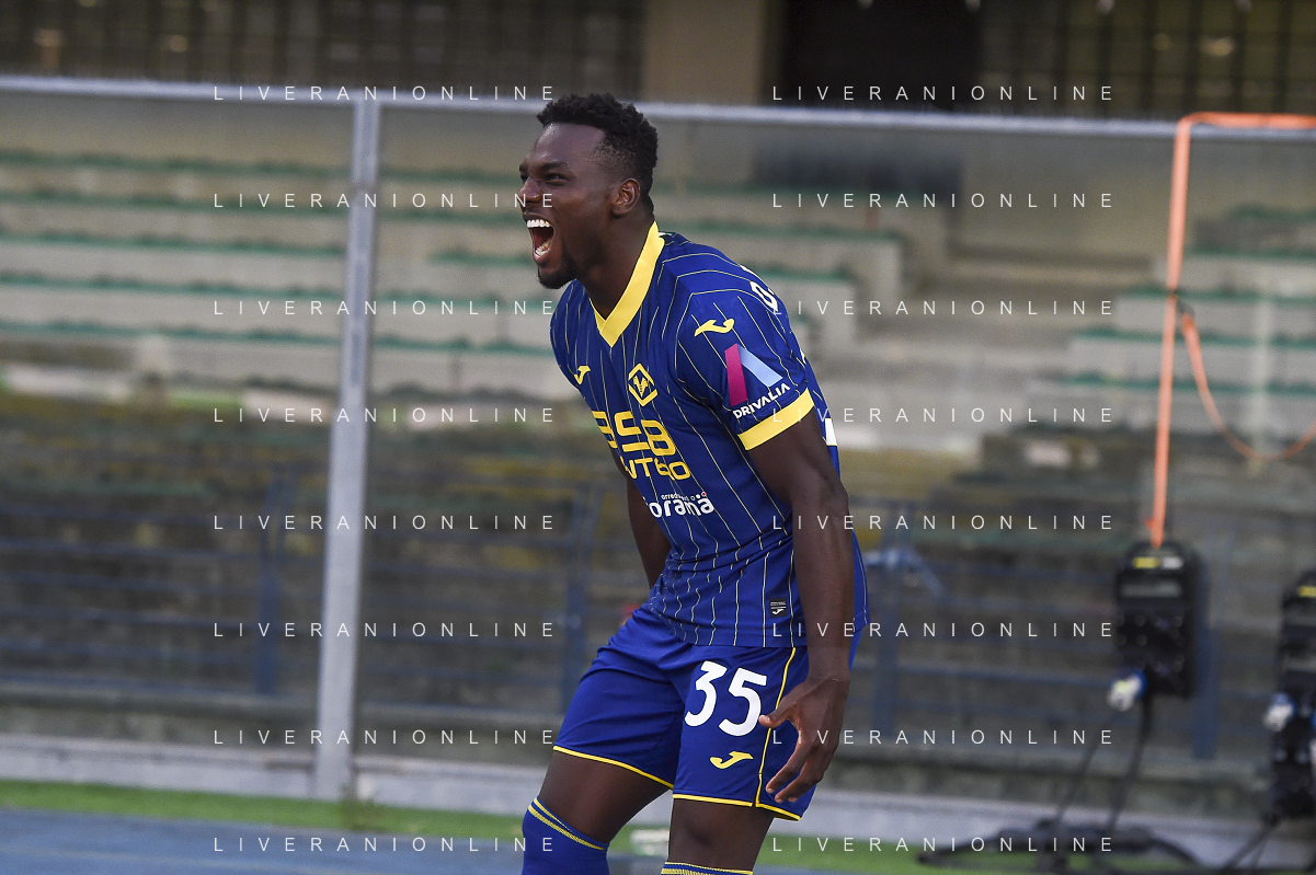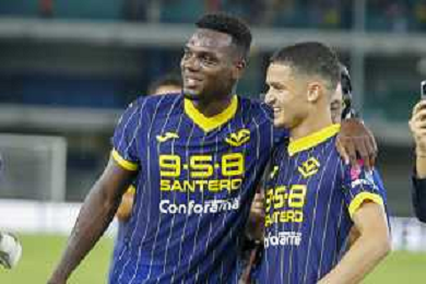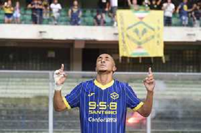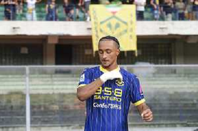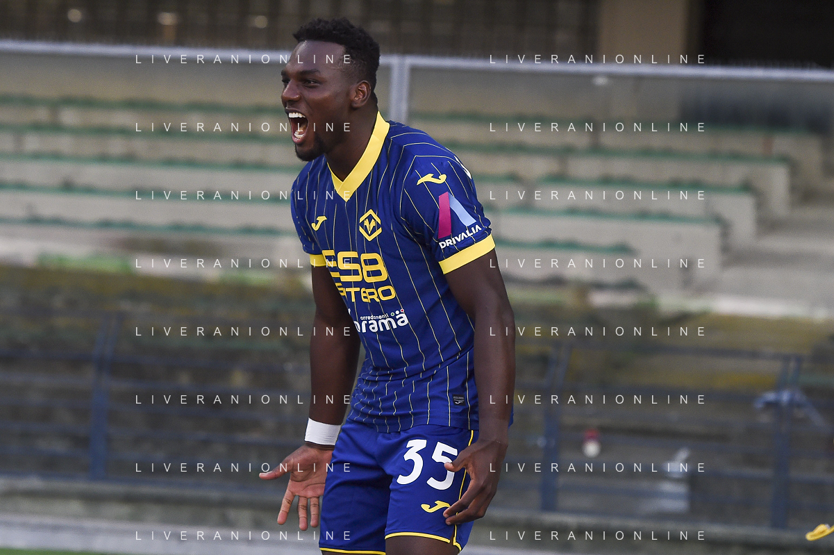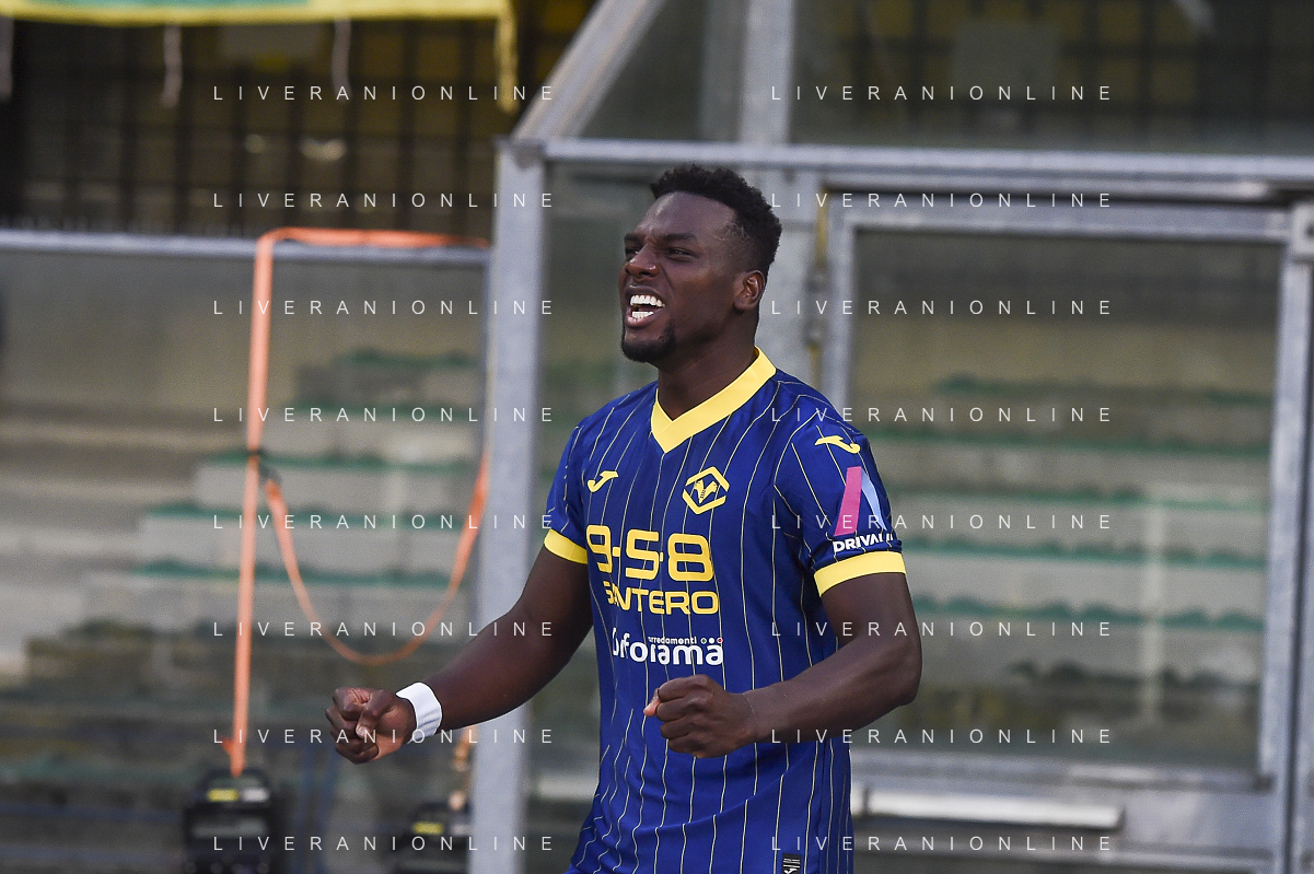 Dailon Livramento of Hellas Verona FC FC celebrates after scoring during Hellas Verona FC vs SSC Napoli, 1° Serie A EniLive 2024-25 game at Marcantonio Bentegodi Stadium in Verona (VR), Italy, on August 18, 2024. (Photo by Davide Casentini)/AGENZIA ALDO LIVERANI SAS
