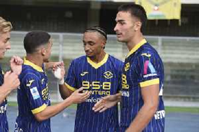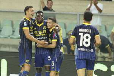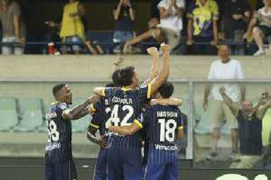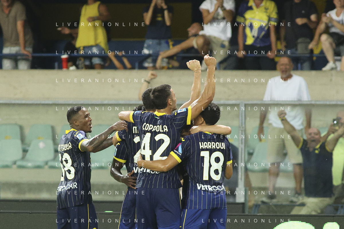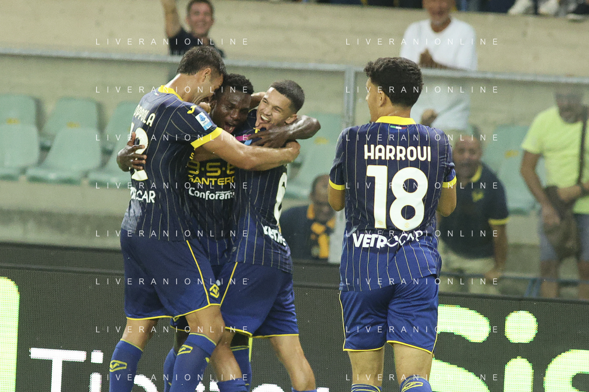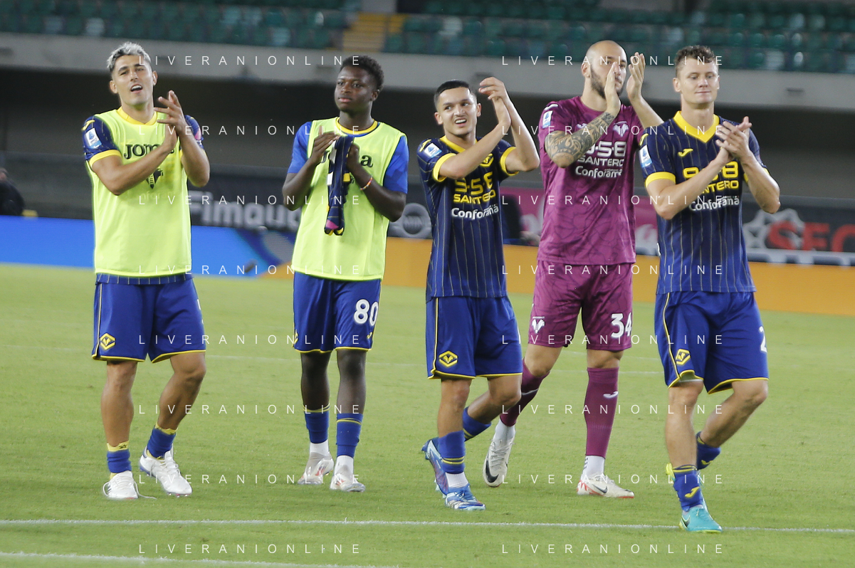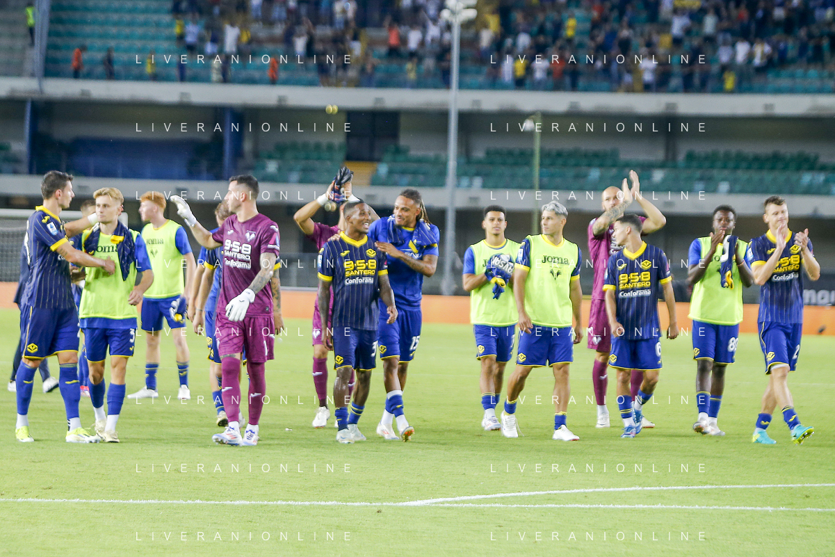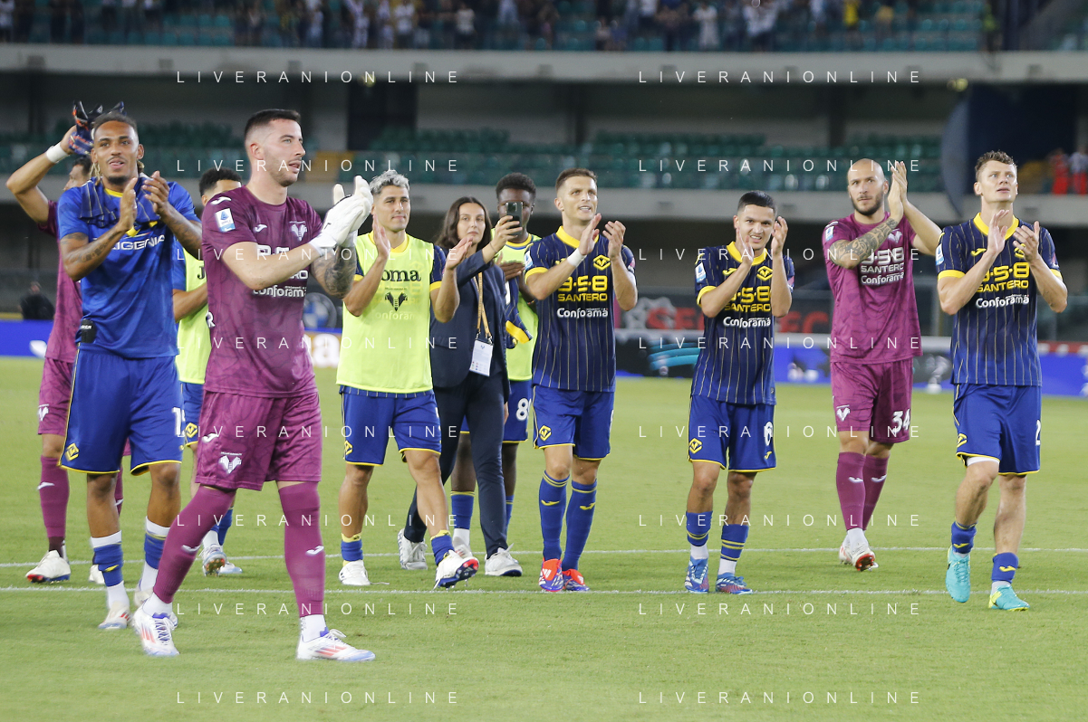 Giocatori del verona festeggiano a fine gara - during Hellas Verona FC vs SSC Napoli, 1° Serie A EniLive 2024-25 game at Marcantonio Bentegodi Stadium in Verona (VR), Italy, on August 18, 2024. (Photo by Davide Casentini)/AGENZIA ALDO LIVERANI SAS