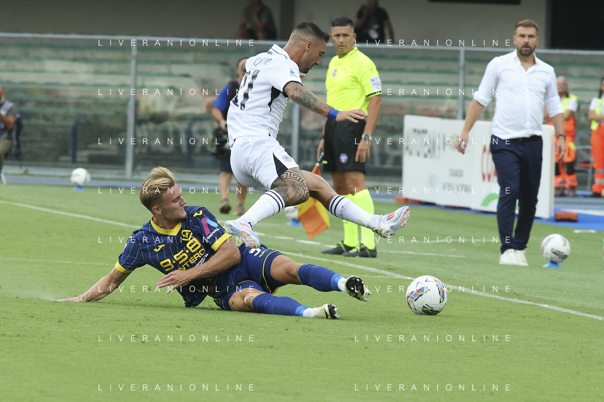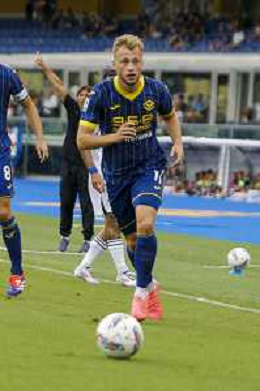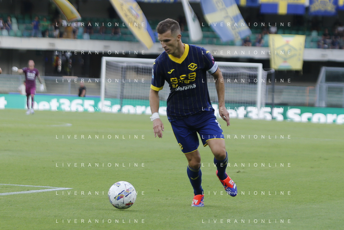 Tomas Suslov of Hellas Verona FC during Hellas Verona FC vs SSC Napoli, 1° Serie A EniLive 2024-25 game at Marcantonio Bentegodi Stadium in Verona (VR), Italy, on August 18, 2024. (Photo by Davide Casentini)/AGENZIA ALDO LIVERANI SAS