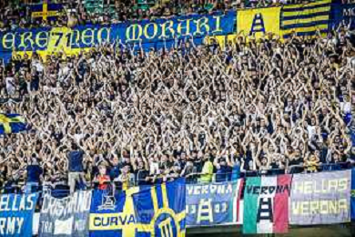 Hellas Verona fans show their support during Hellas Verona FC vs SSC Napoli, 1° Serie A EniLive 2024-25 game at Marcantonio Bentegodi Stadium in Verona (VR), Italy, on August 18, 2024. (Photo by Davide Casentini)/AGENZIA ALDO LIVERANI SAS