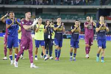 Hellas Verona players applaud the fans following the final whistle during Hellas Verona FC vs SSC Napoli, 1° Serie A EniLive 2024-25 game at Marcantonio Bentegodi Stadium in Verona (VR), Italy, on August 18, 2024. (Photo by Davide Casentini)/AGENZIA ALDO LIVERANI SAS