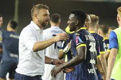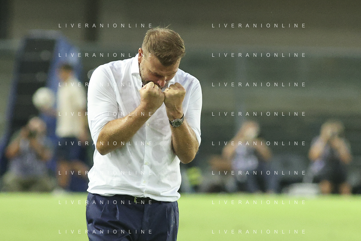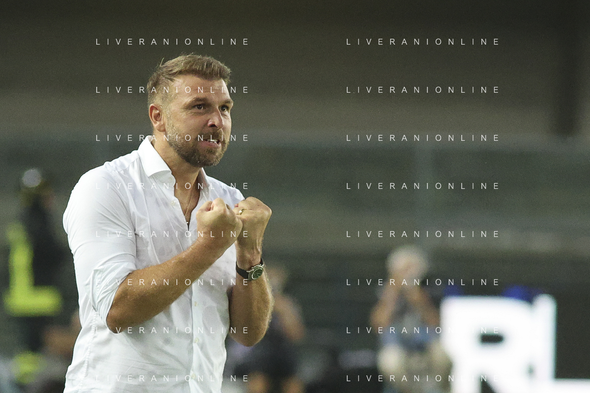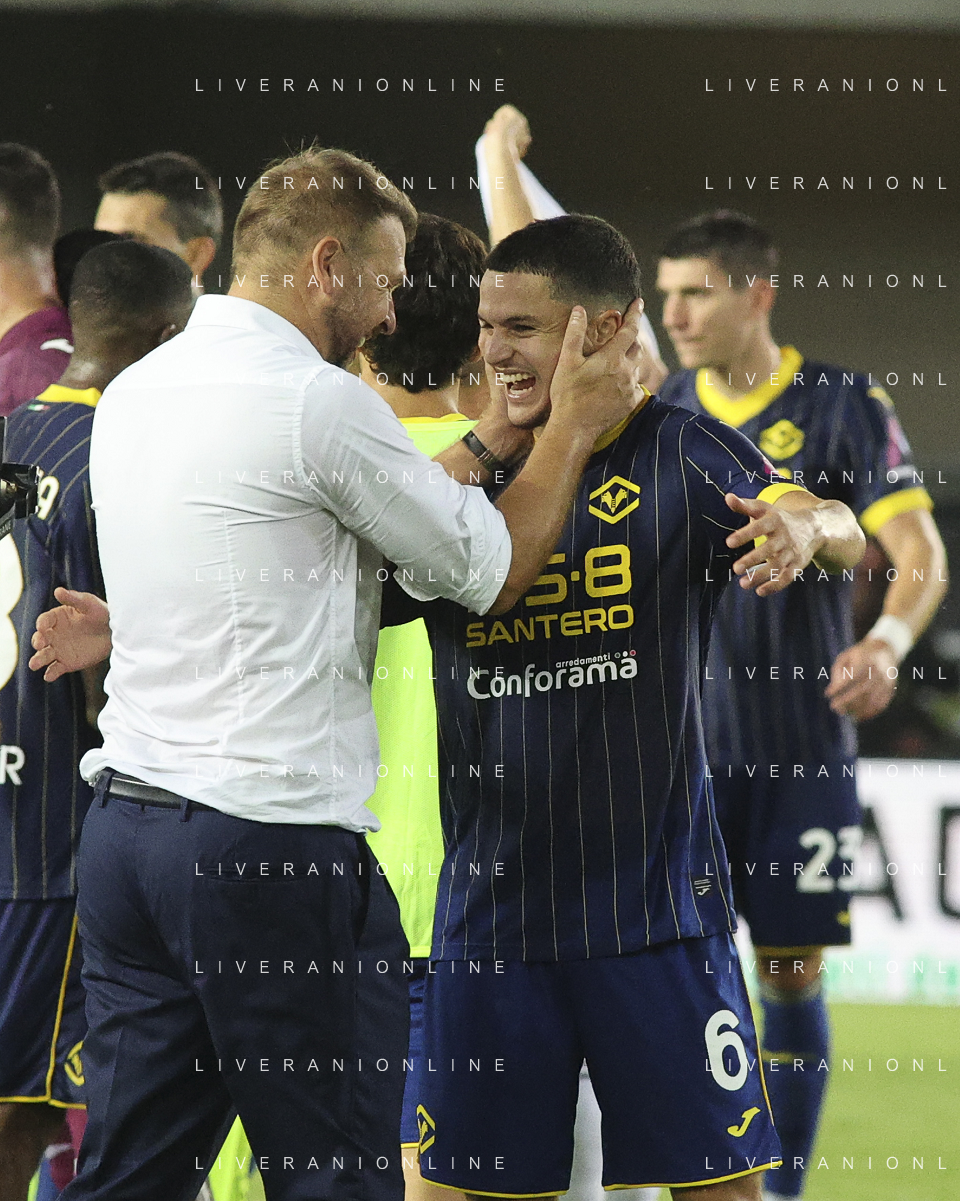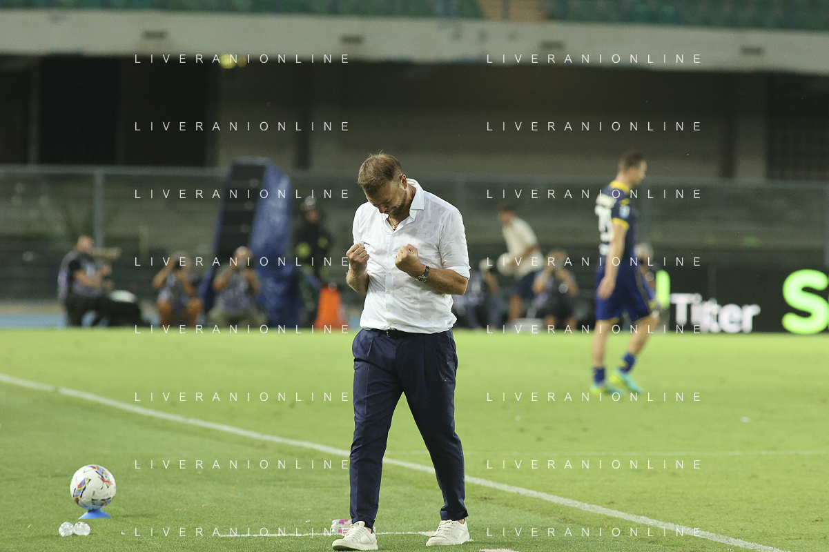 Paolo Zanetti Head Coach of Hellas Verona FC celebrate the victory at the end of Hellas Verona FC vs SSC Napoli, 1° Serie A EniLive 2024-25 game at Marcantonio Bentegodi Stadium in Verona (VR), Italy, on August 18, 2024. (Photo by Davide Casentini)/AGENZIA ALDO LIVERANI SAS