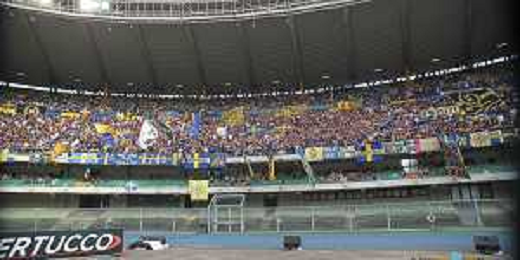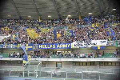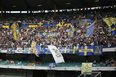 the fans show their support during Hellas Verona FC vs SSC Napoli, 1° Serie A EniLive 2024-25 game at Marcantonio Bentegodi Stadium in Verona (VR), Italy, on August 18, 2024. (Photo by Davide Casentini)/AGENZIA ALDO LIVERANI SAS