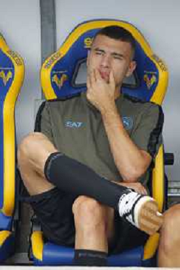 Amir Rrahmani of SSC Napoliduring Hellas Verona FC vs SSC Napoli, 1° Serie A EniLive 2024-25 game at Marcantonio Bentegodi Stadium in Verona (VR), Italy, on August 18, 2024. (Photo by Davide Casentini)/AGENZIA ALDO LIVERANI SAS