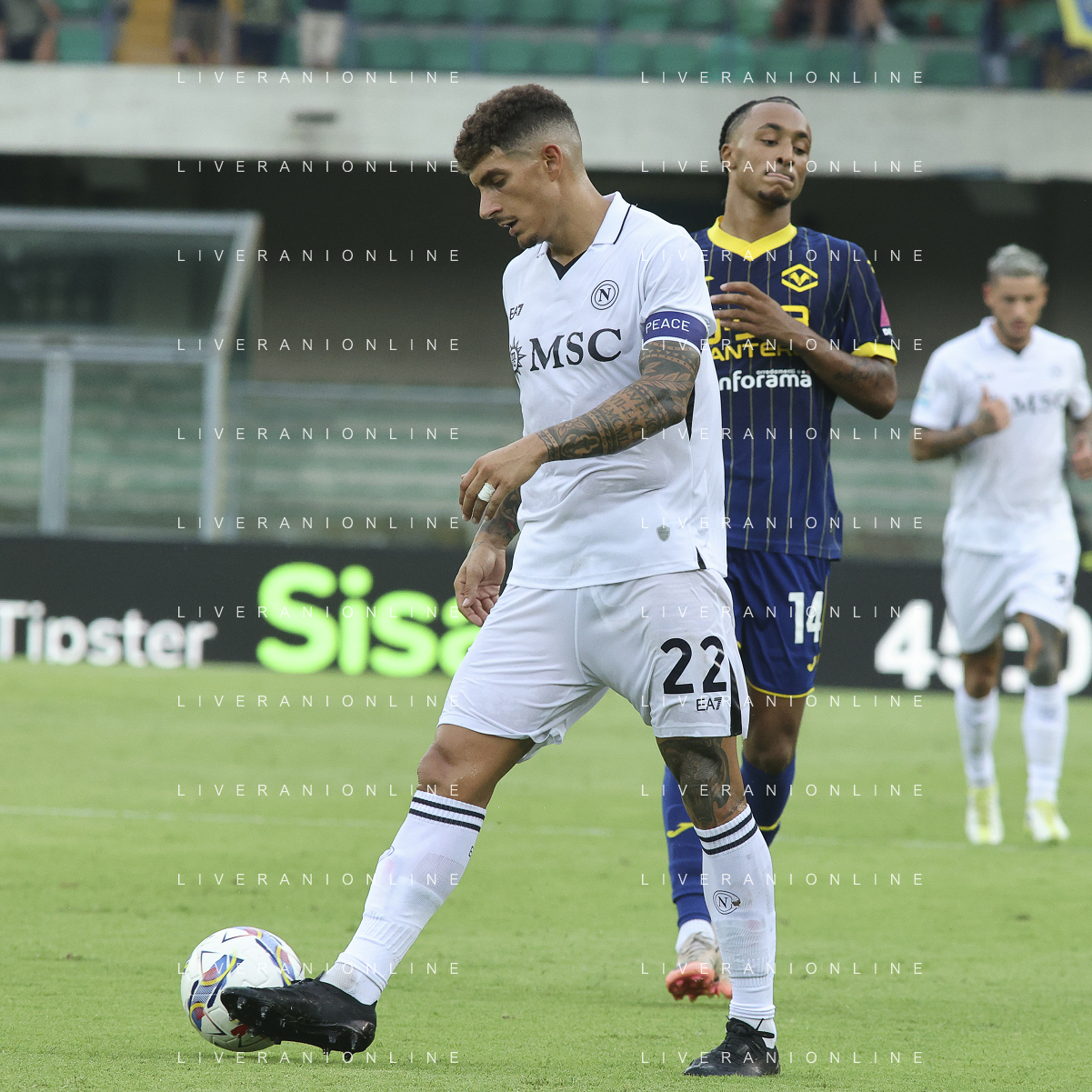 Pasquale Mazzocchi of SSC Napoli during Hellas Verona FC vs SSC Napoli, 1° Serie A EniLive 2024-25 game at Marcantonio Bentegodi Stadium in Verona (VR), Italy, on August 18, 2024. (Photo by Davide Casentini)/AGENZIA ALDO LIVERANI SAS