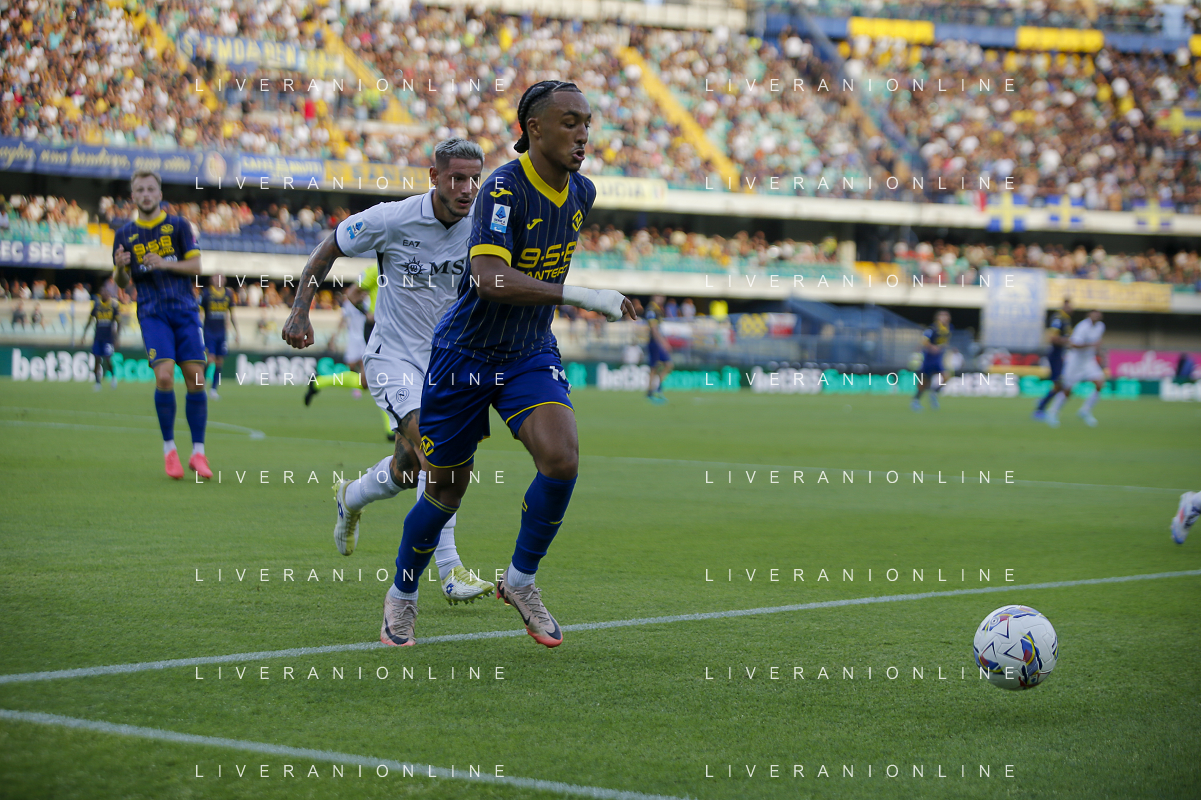 Dailon Livramento of Hellas Verona FC during Hellas Verona FC vs SSC Napoli, 1° Serie A EniLive 2024-25 game at Marcantonio Bentegodi Stadium in Verona (VR), Italy, on August 18, 2024. (Photo by Davide Casentini)/AGENZIA ALDO LIVERANI SAS