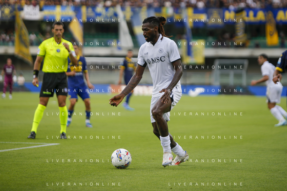 Andre'-Frank Zambo Anguissa of SSC Napoli during Hellas Verona FC vs SSC Napoli, 1° Serie A EniLive 2024-25 game at Marcantonio Bentegodi Stadium in Verona (VR), Italy, on August 18, 2024. (Photo by Davide Casentini)/AGENZIA ALDO LIVERANI SAS