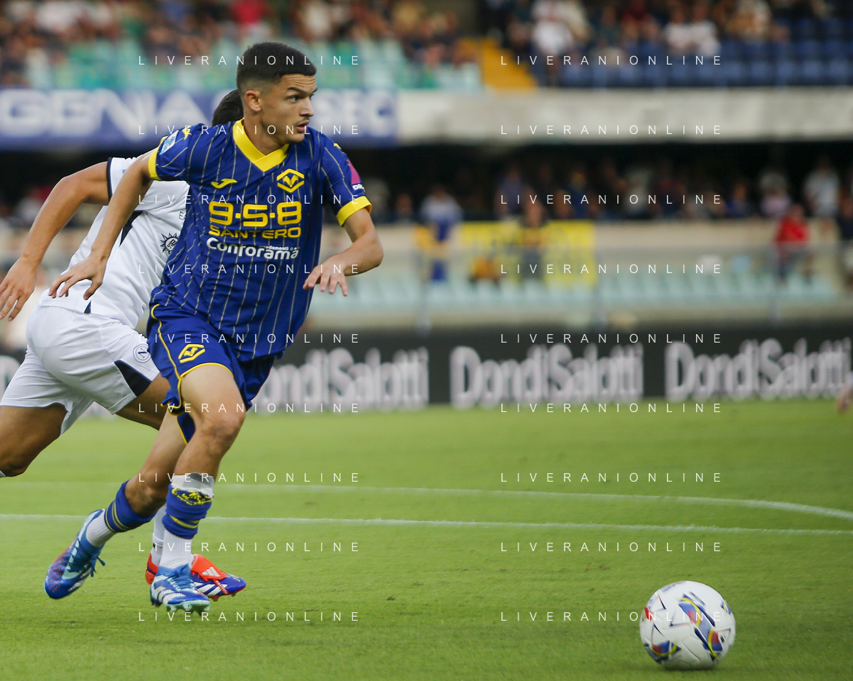 Abdou Harroui of Hellas Verona FC during Hellas Verona FC vs SSC Napoli, 1° Serie A EniLive 2024-25 game at Marcantonio Bentegodi Stadium in Verona (VR), Italy, on August 18, 2024. (Photo by Davide Casentini)/AGENZIA ALDO LIVERANI SAS