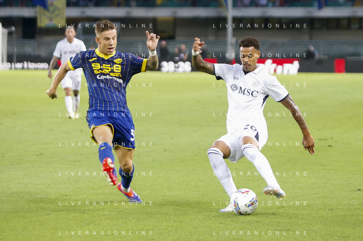 Pasquale Mazzocchi - during Hellas Verona FC vs SSC Napoli, 1° Serie A EniLive 2024-25 game at Marcantonio Bentegodi Stadium in Verona (VR), Italy, on August 18, 2024. (Photo by Davide Casentini)/AGENZIA ALDO LIVERANI SAS