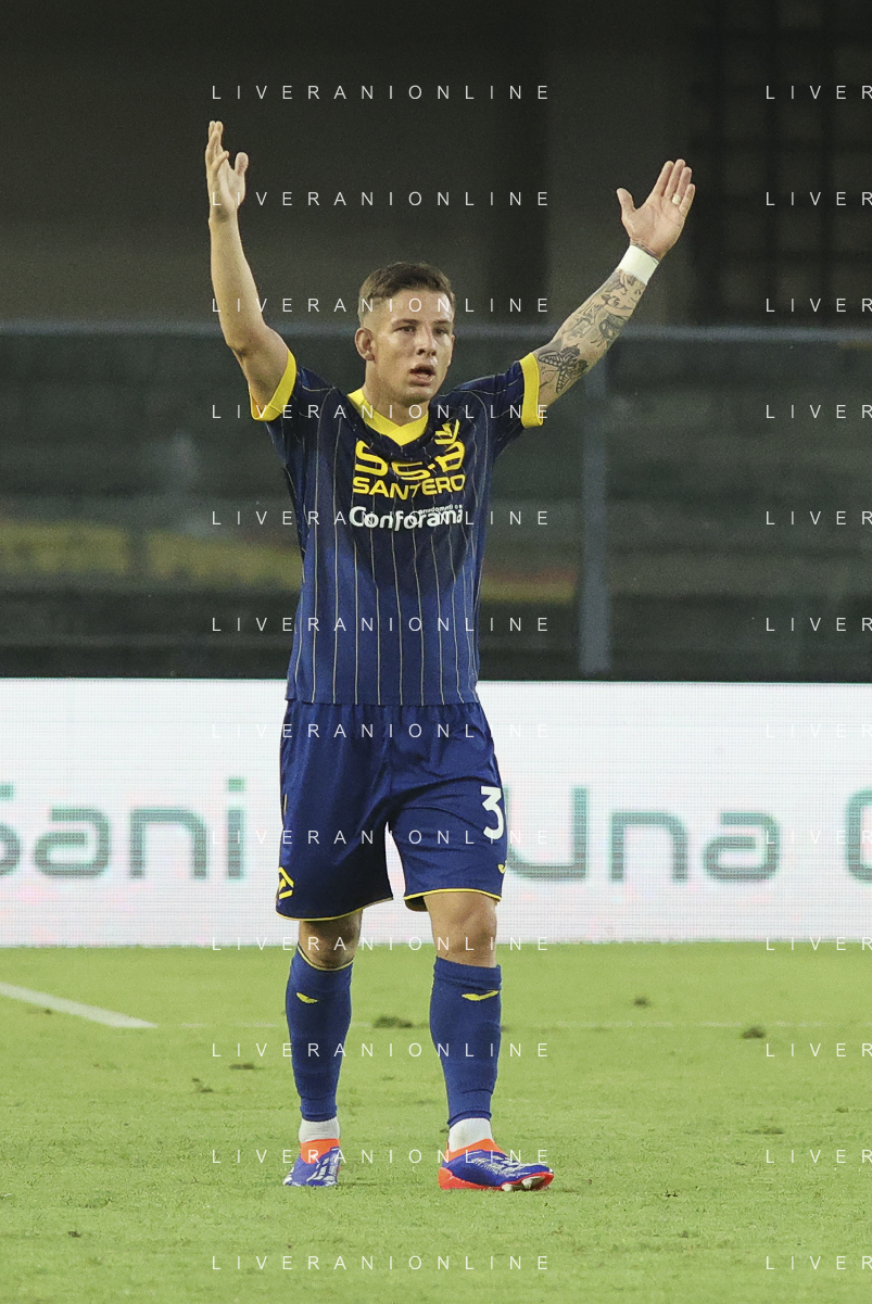 Daniel Mosquera of Hellas Verona FC during Hellas Verona FC vs SSC Napoli, 1° Serie A EniLive 2024-25 game at Marcantonio Bentegodi Stadium in Verona (VR), Italy, on August 18, 2024. (Photo by Davide Casentini)/AGENZIA ALDO LIVERANI SAS
