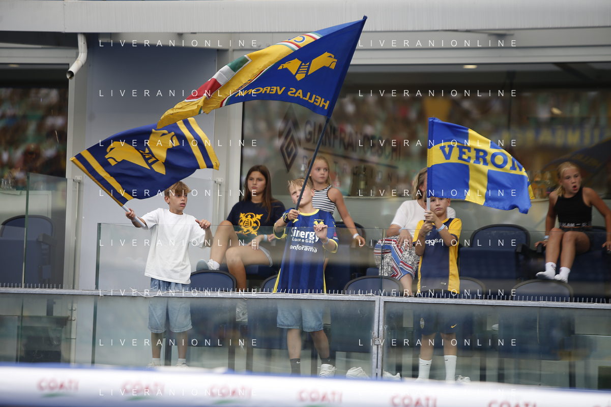Hellas Verona fans during Hellas Verona FC vs SSC Napoli, 1° Serie A EniLive 2024-25 game at Marcantonio Bentegodi Stadium in Verona (VR), Italy, on August 18, 2024. (Photo by Davide Casentini)/AGENZIA ALDO LIVERANI SAS