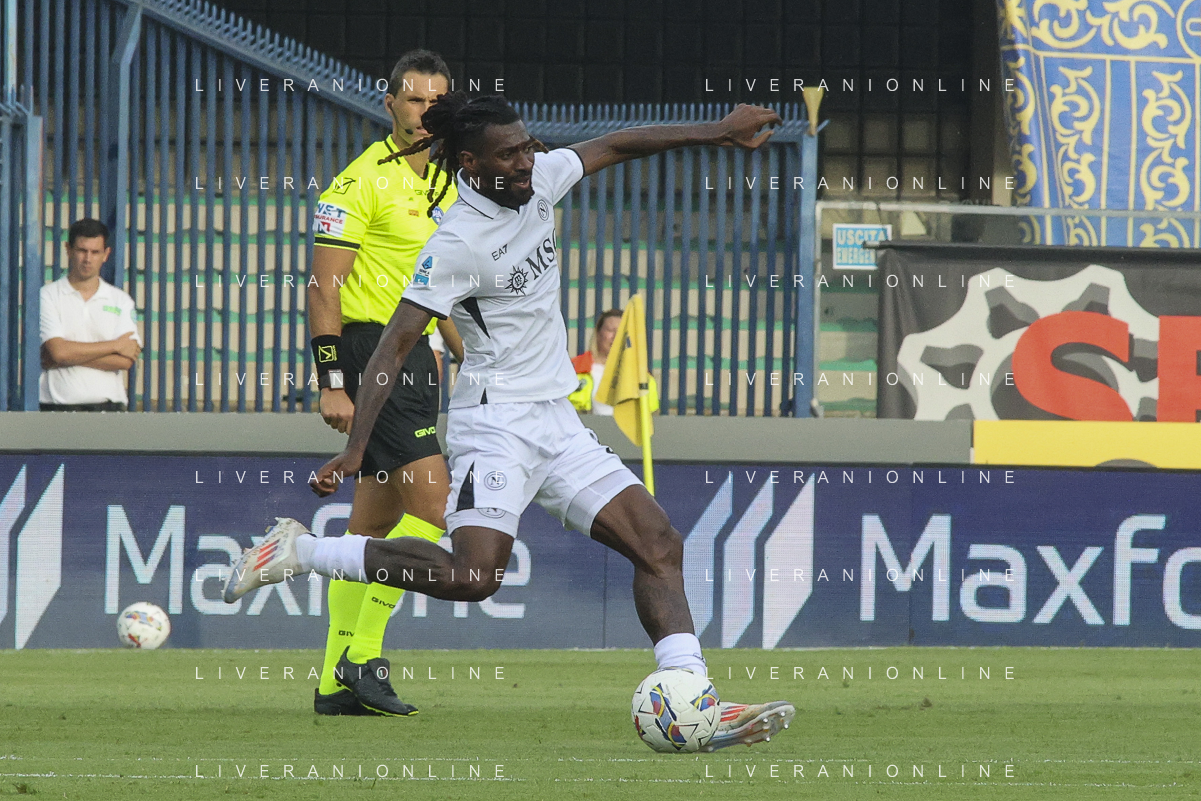 Andre'-Frank Zambo Anguissa of SSC Napoli play the ball during Hellas Verona FC vs SSC Napoli, 1° Serie A EniLive 2024-25 game at Marcantonio Bentegodi Stadium in Verona (VR), Italy, on August 18, 2024. (Photo by Davide Casentini)/AGENZIA ALDO LIVERANI SAS