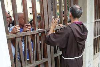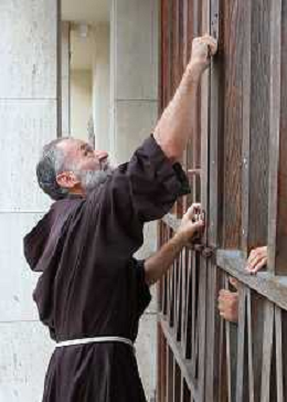 IMOLA 19 08 2024 MERCATINO DEI CAPPUCCINI APERTURA PRIMO GIORNO NELLA FOTO APERTURA DELLA PORTA DELL'INGRESSO FRATE MATTEO GHISINI ©SANNA/AGENZIA ALDO LIVERANI SAS