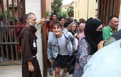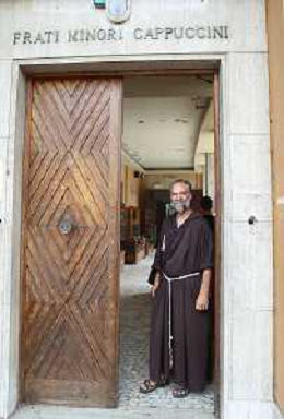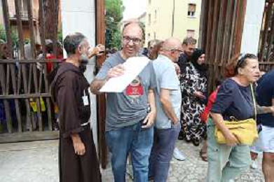 IMOLA 19 08 2024 MERCATINO DEI CAPPUCCINI APERTURA PRIMO GIORNO NELLA FOTO FRATE MATTEO GHISINI SULLA PORTA DELL'INGRESSO PRINCIPALE ©SANNA/AGENZIA ALDO LIVERANI SAS