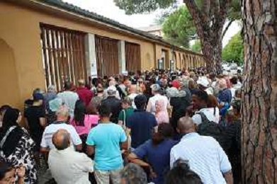 IMOLA 19 08 2024 MERCATINO DEI CAPPUCCINI APERTURA PRIMO GIORNO NELLA FOTO I CITTADINI PRIMA DI ENTRARE ©SANNA/AGENZIA ALDO LIVERANI SAS