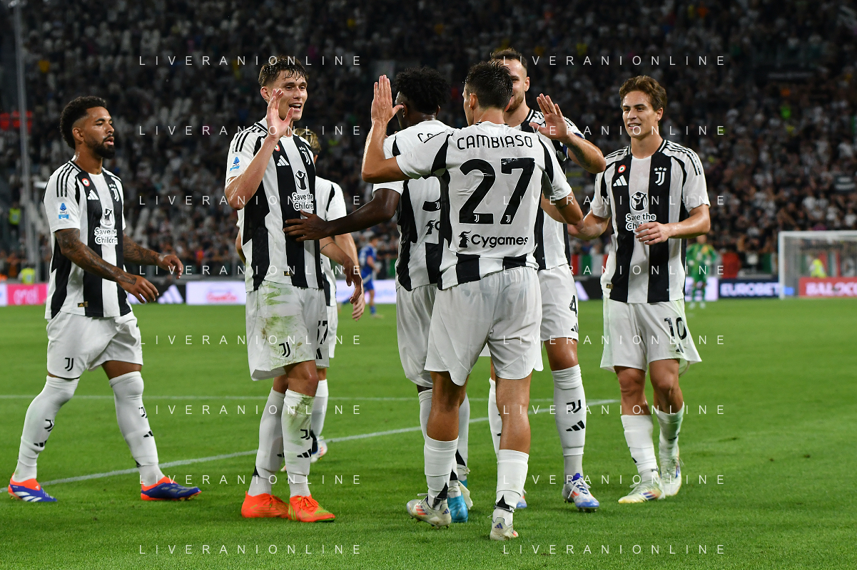 Torino 19.08.2024 Allianz Stadium @Manuela Viganti /Ag. Aldo Liverani sas Juventus vs Como Campionato Calcio Serie A Enilive 2024/2025 1a giornata Nella foto: esultanza juventus dopo il gol di andrea cambiaso