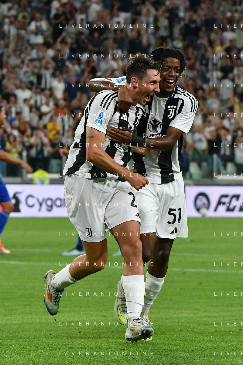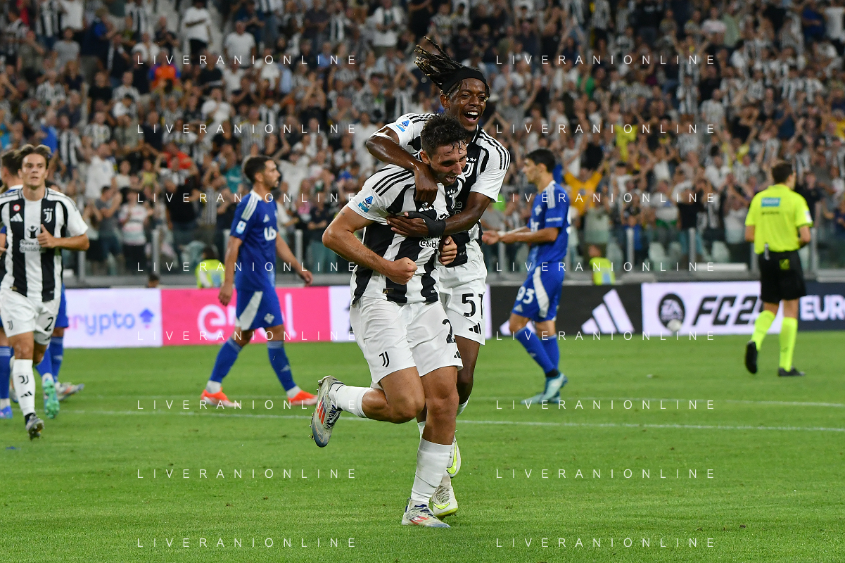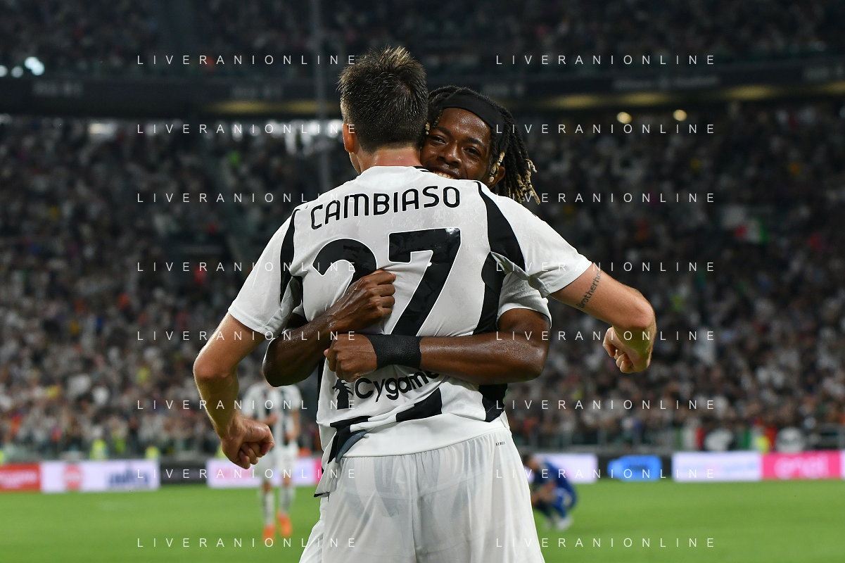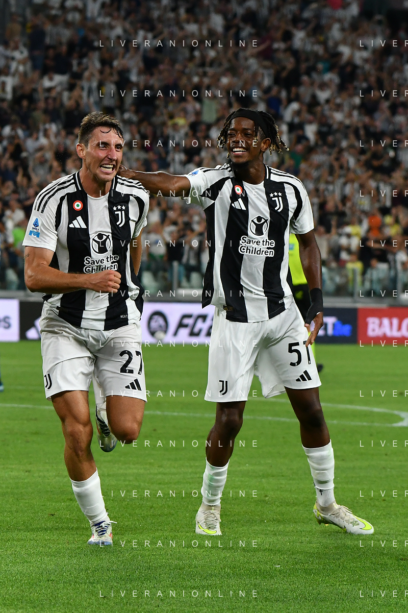 Torino 19.08.2024 Allianz Stadium @Manuela Viganti /Ag. Aldo Liverani sas Juventus vs Como Campionato Calcio Serie A Enilive 2024/2025 1a giornata Nella foto: esultanza andrea cambiaso e samuel mbangula dopo il gol