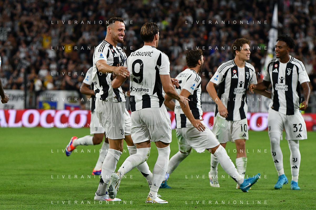 Torino 19.08.2024 Allianz Stadium @Manuela Viganti /Ag. Aldo Liverani sas Juventus vs Como Campionato Calcio Serie A Enilive 2024/2025 1a giornata Nella foto: esultanza juventus prima che il var annullasse il gol di dusan vlahovic