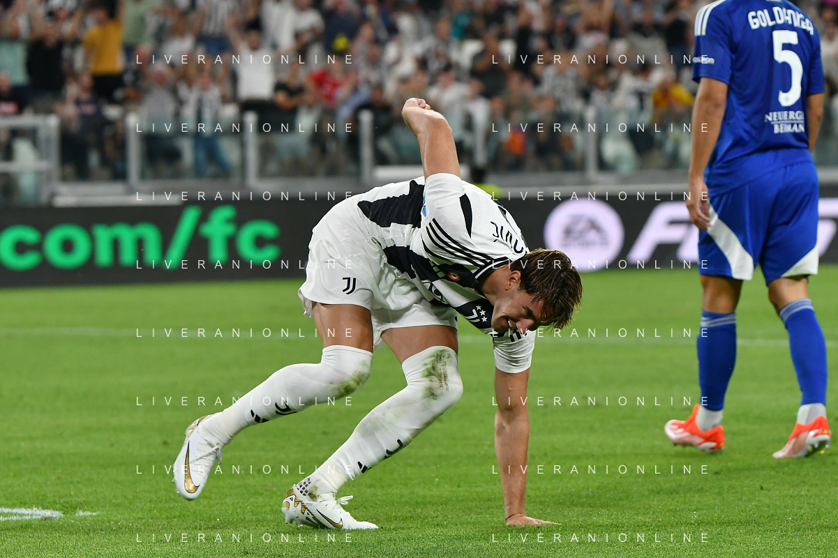 Torino 19.08.2024 Allianz Stadium @Manuela Viganti /Ag. Aldo Liverani sas Juventus vs Como Campionato Calcio Serie A Enilive 2024/2025 1a giornata Nella foto: esultanza dusan vlahovic prima che il var annullasse il gol