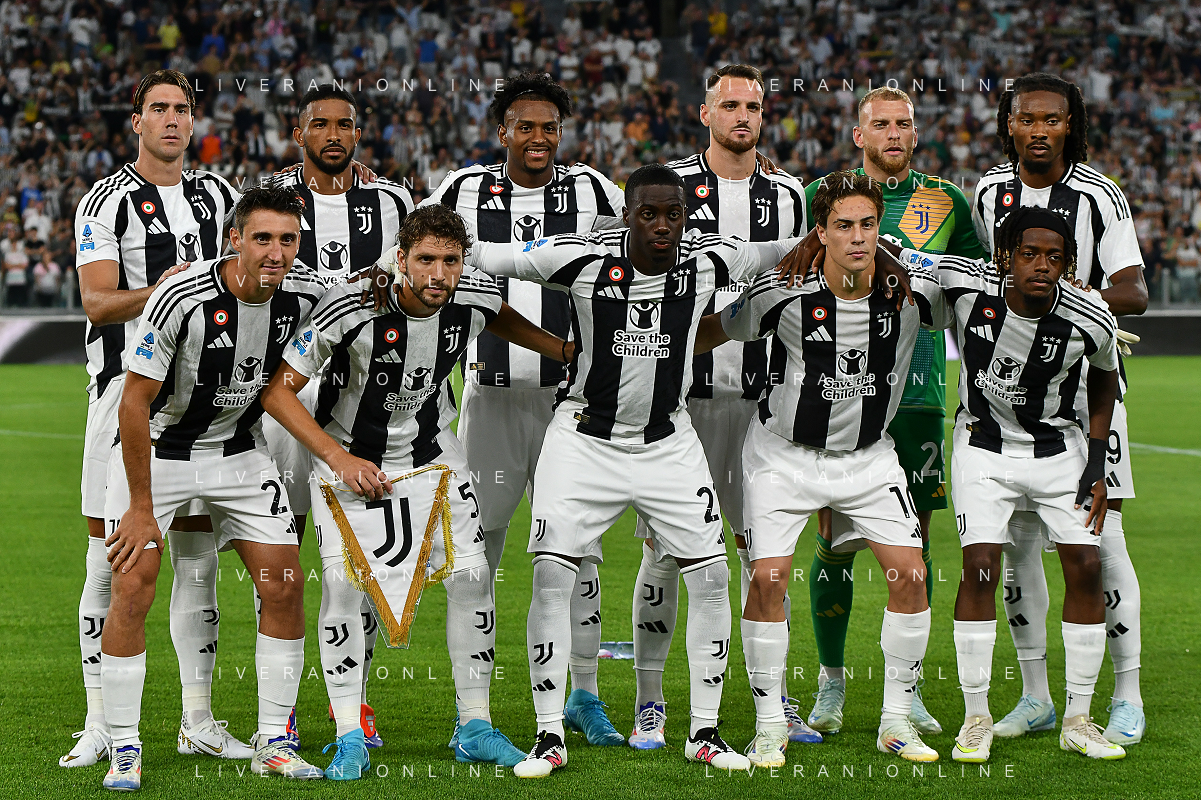 Torino 19.08.2024 Allianz Stadium @Manuela Viganti /Ag. Aldo Liverani sas Juventus vs Como Campionato Calcio Serie A Enilive 2024/2025 1a giornata Nella foto: la formazione della juventus da sx verso dx: dusan vlahovic, gleison bremer, juan cabal, federico gatti, michele di gregorio, khephren thuram, andrea cambiaso, manuel locatelli, timothy weah, kenan yildiz, samuel mbangula