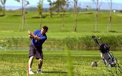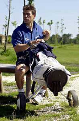 RETROSPETTIVA CHRISTIAN GHEDINA SCIATORE NELLA FOTO CHRISTIAN GHEDINA A GRADO IL GIORNO 19-05-2001 GIOCA A GOLF FOTO FABIO SERINO-AG ALDO LIVERANI SAS