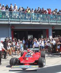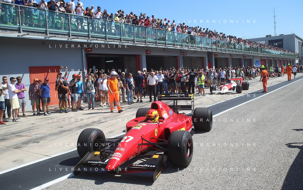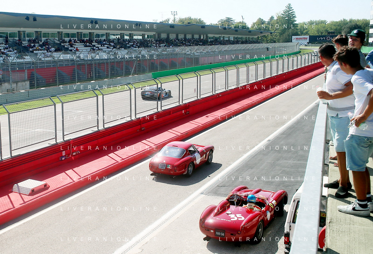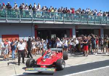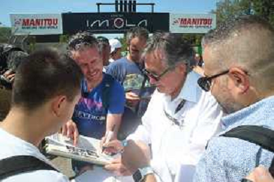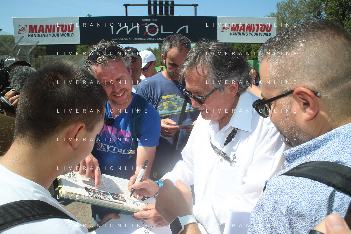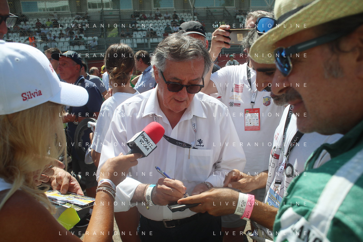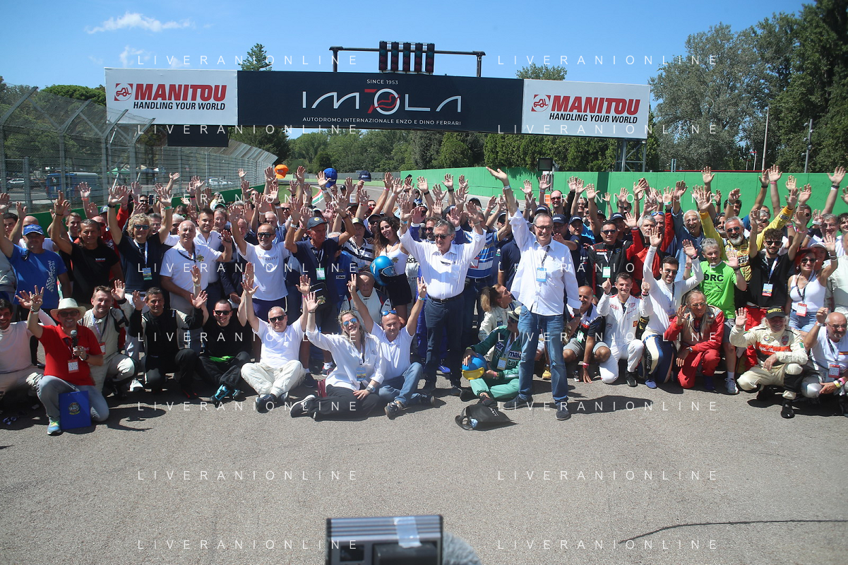 IMOLA 24 08 2024 AUTODROMO ENZO E DINO FERRARI MINARDI DAY NELLA FOTO GIAN CARLO MINARDI PRESIDENTE AUTODROMO DI IMOLA CON I PILOTI FOTO GIANNI SANNA-AG ALDO LIVERANI SAS