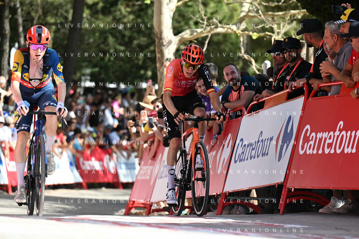 24-08-2024 Vuelta A Espana; Tappa 08 Ubeda - Cazorla; 2024, Ineos Grenadiers; 2024, Lidl - Trek; Rodriguez Cano, Carlos; Skjelmose Jensen, Mattias; Cazorla; ©SIROTTI/AGENZIA ALDO LIVERANI SAS