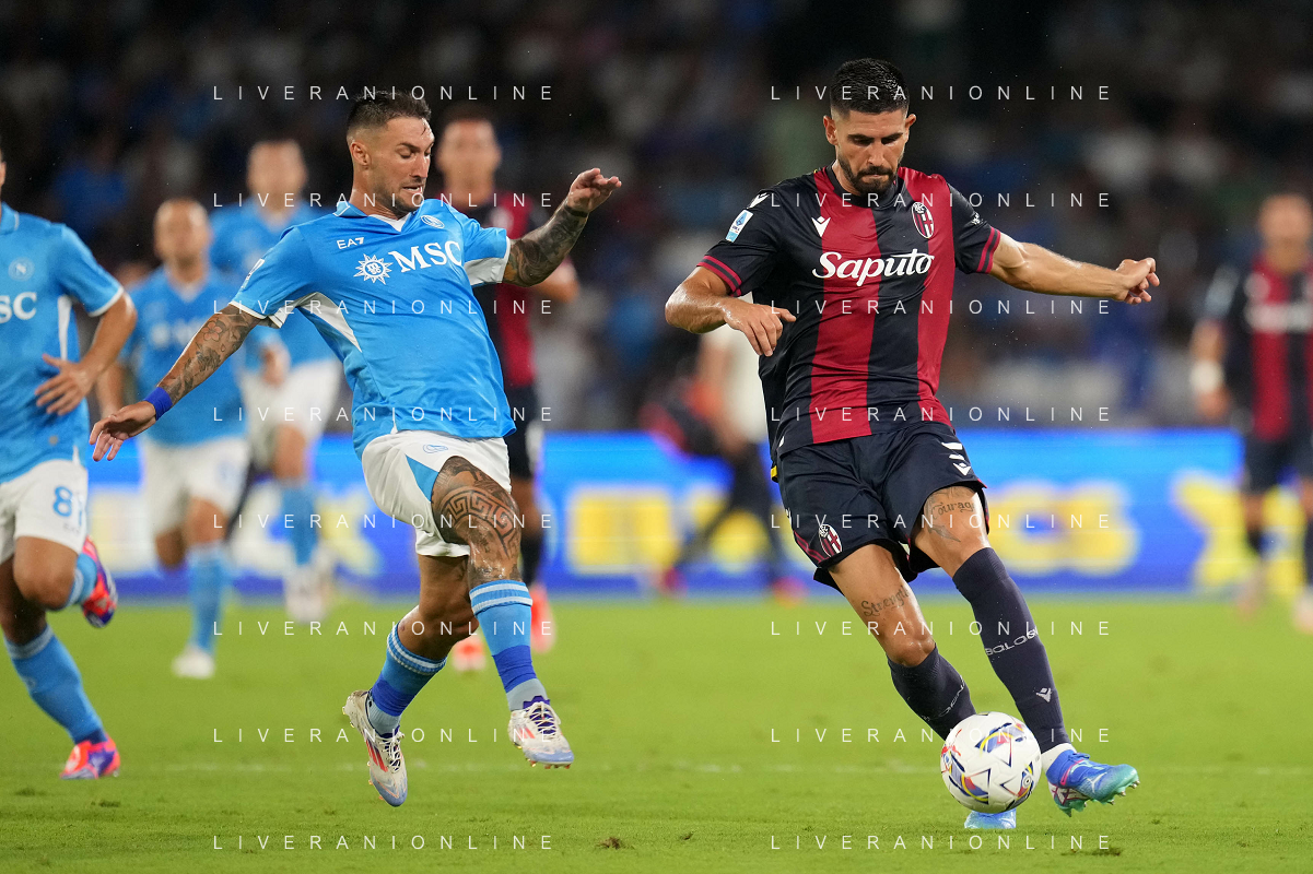 NAPOLI - BOLOGNA 2a giornata Campionato Calcio Serie A Enilive 25.08.2024 Nella Foto: Charalampos Lykogiannis, Pasquale Mazzocchi ©MOSCA/AGENZIA ALDO LIVERANI SAS