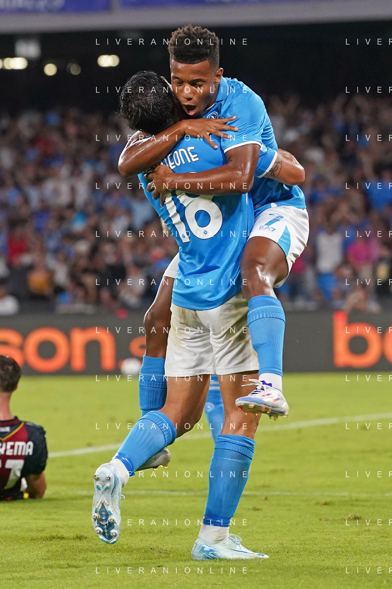 NAPOLI - BOLOGNA 2a giornata Campionato Calcio Serie A Enilive 25.08.2024 Nella Foto: esultanza Giovanni Simeone, David Neres Foto Mosca, Ag Liverani /AGENZIA ALDO LIVERANI SAS